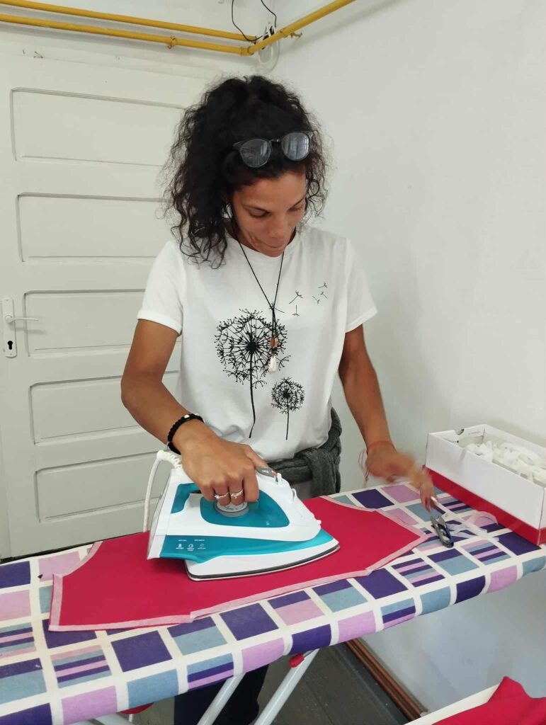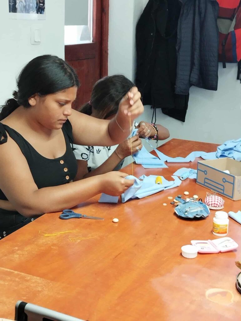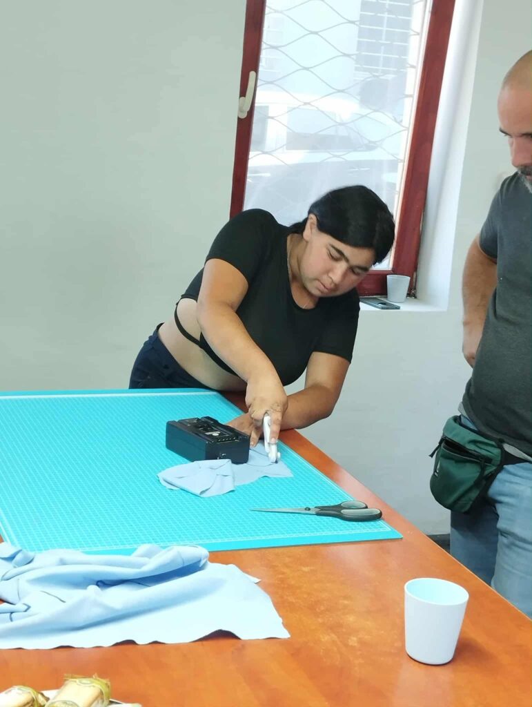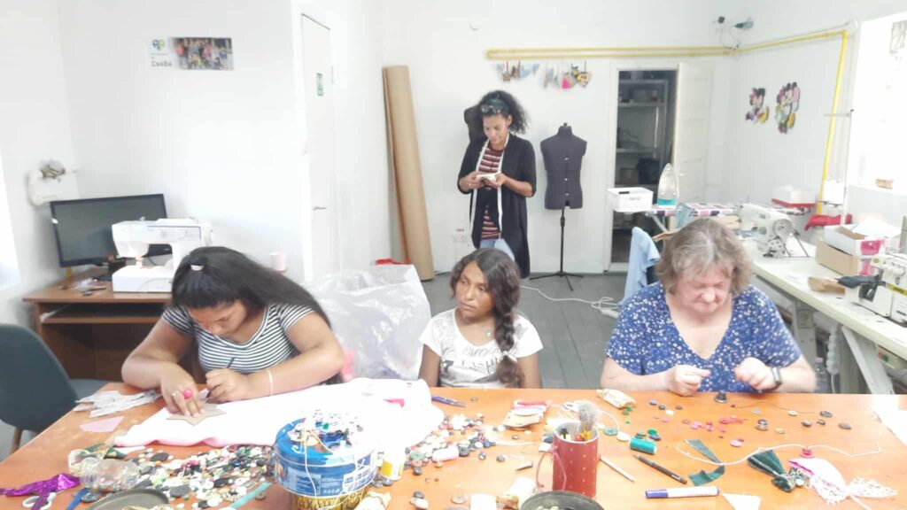 „A szociális varroda által a civil szervezet három célt szeretne megvalósítani: lehetőséget nyújtani a CséBé csapat tagjai számára, hogy megismerjenek és elsajátítsanak egy szakmát, hogy munkát biztosítson kezdetben egy-két, később több Somlyó 33. szám alatt élő ember számára, végül, hogy stabil anyagi hátteret képezzen az egyesület által szervezett programokhoz (uszodai belépők, fagyi, táncfellépésekhez ruhák, koncertre belépők és mások). A CséBé csapat 2021-ben alakult a csíksomlyói roma telepen kiütött tűz nyomán otthon nélkül maradt fiatalokból, az egyesületet 2023-ban jegyezték be. Jelenleg több projektben dolgoznak a fiatalokkal, ezek közt van úszásoktatás, salsaoktatás, PhotoVoice program, fórum színház. Emellett rendszeresen járnak színházba, koncertre, moziba, kiállításokra és más kulturális eseményekre. Tucatnyi önkéntes segíti a munkát, együttműködnek három fogorvossal, akik rendszeresen kezelik a gyermekeket. Tevékenységeiket pályázatokból és magánszemélyek támogatásából finanszírozzák. (Az egyesület munkáját ITT ismerhetik meg.) A szociális varrodában Oldy pizsamákat készítenek, ezek saját tapasztalat alapján kifejlesztett modellek, melyek ágyban fekvő, magatehetetlen betegek ápolását könnyítik meg. Mivel a mozgásában korlátozott beteget nagyon nehéz felültetni, ezt a pizsamát az oldalán patentekkel látták el, így felvételéhez, levetéséhez nem szükséges az ápolt személyt felültetni. Ugyanakkor a lába közötti patentes rész megakadályozza, hogy a pizsama a beteg hátán meggyűrődjön és felfekvést okozzon. Jelenleg drapp és világos kék színben készülnek, nyári változatban, rövid ujjal. Később több színben, többféle változat is fog készülni.”