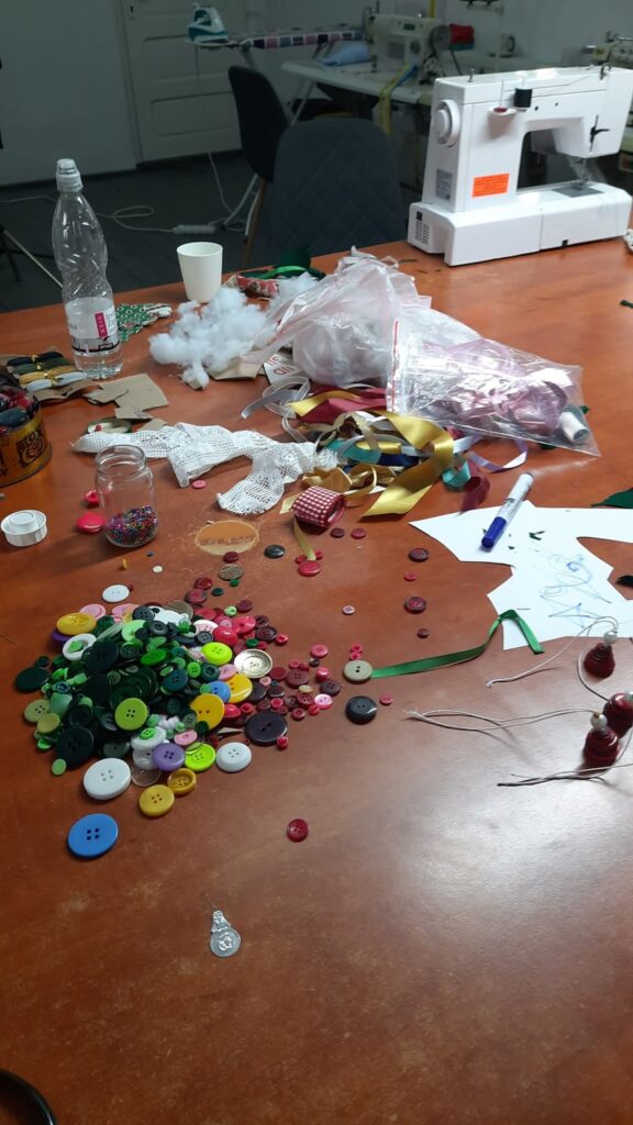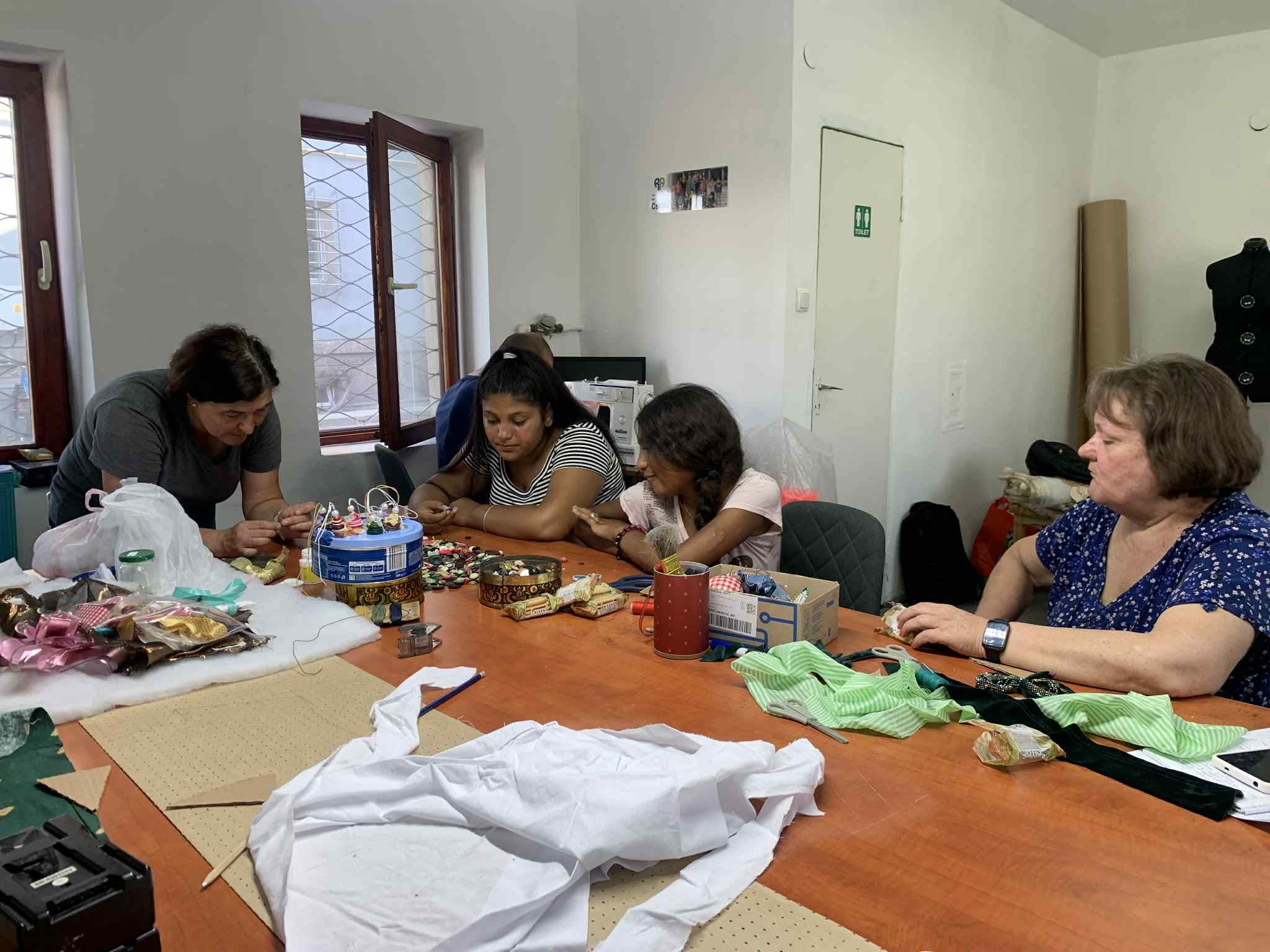 Néhány hét teltével Csata Orsolyát arról kérdeztem, hol tart most, hogy áll a kezdeményezés. „Épp hat hete nyitottunk. Azóta kidolgoztuk az Oldy minden méretét, elkezdődött a gyártás. Jelenleg egy alkalmazott profi varrónő és egy Somlyó 33-ból járó nő van, aki nagyon gyorsan és nagyon ügyesen megtanult varrni. Naponta 8–14-ig az Oldykat varrják, 14–16 óra között oktatnak ők is. 16 órától minden nap önkéntesekkel dolgozunk a gyerekekkel. Olyan nagy az érdeklődés, hogy nem győzzük. Mindenki akar varrni. Kézi varrással, tűbefűzéssel kezdjük, majd gombvarrás, kisebb munkák, szívalakú tűpárnát készítünk, utána mehetnek a varrógépre. Öt önkéntes jelentkezett, aki varrni tanítaná őket, igazi kihívás most az, hogy rendszert alakítsunk ki, programot állítsunk össze. Azt is kitaláltuk, hogy megyünk majd karácsonyi vásárokba, igyekszünk olyan termékeket is készíteni, amit el is tudunk készíteni, szép is lesz és el is lehet adni.”