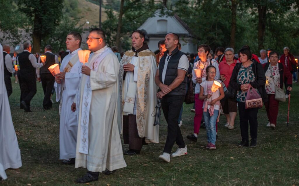 Mint minden hónap első szombatján, már a kora délutáni órákban zarándokok ezrei érkeztek a ferences Mária-kegyhelyre. Köztük az 1Úton zarándoklat gyalogos és kerékpáros résztvevői is. Az imaórák a megszokott rend szerint négy órakor kezdődtek: az elsőt a gyimesvölgyiek, míg a másodikat a csíksomlyói kegytemplom rendezői vezették. Eközben sokan keresték fel a kolostor gyóntatóhelyiségeit, hogy szentgyónásban részesüljenek. A hat órakor kezdődő szentmisét Timár Sándor Asztrik ferences szerzetes, a csíksomlyói kegytemplom igazgatója mutatta be. Prédikációjában hangsúlyozta: amikor a Boldogságos Szűz Máriát köszöntjük, akkor elsősorban arra a számtalan segítségre, támogatásra gondolunk vissza, amit életünk folyamán tőle kaptunk, általa tapasztaltunk.