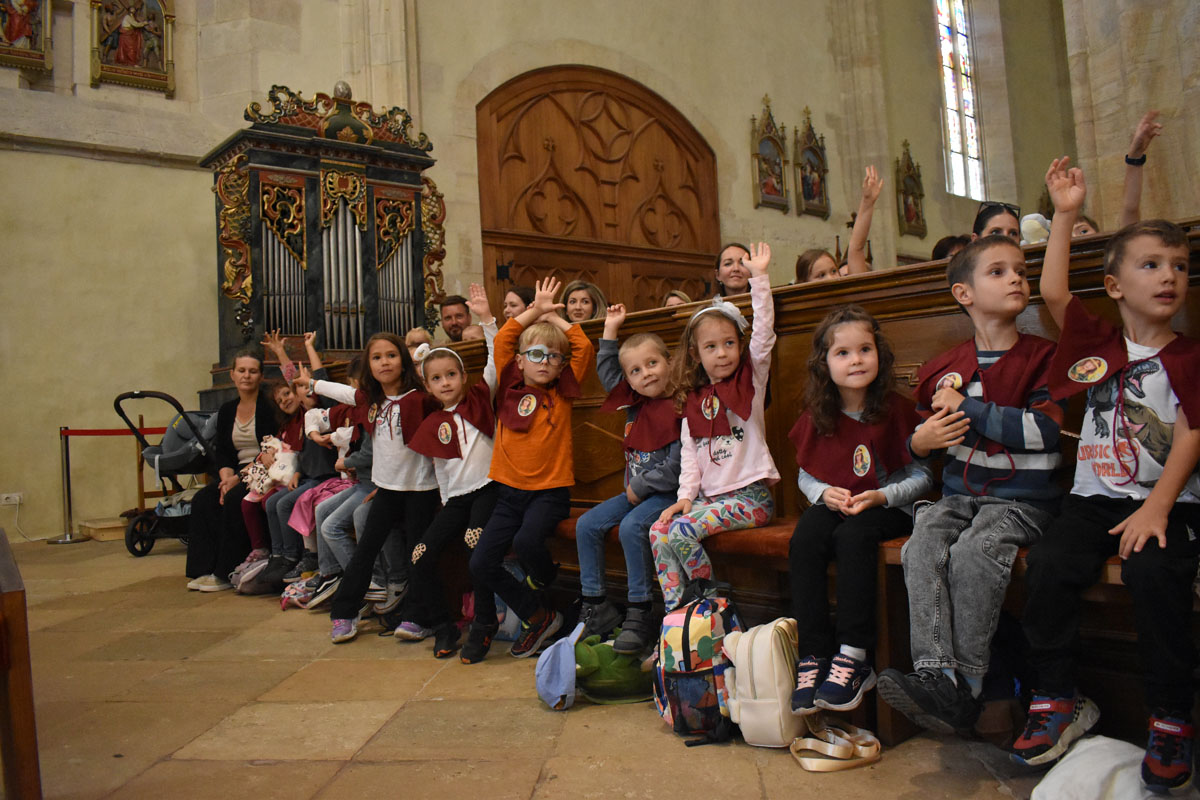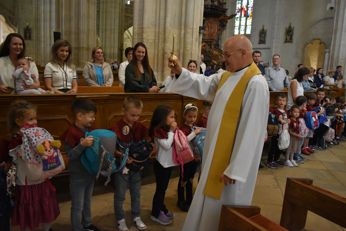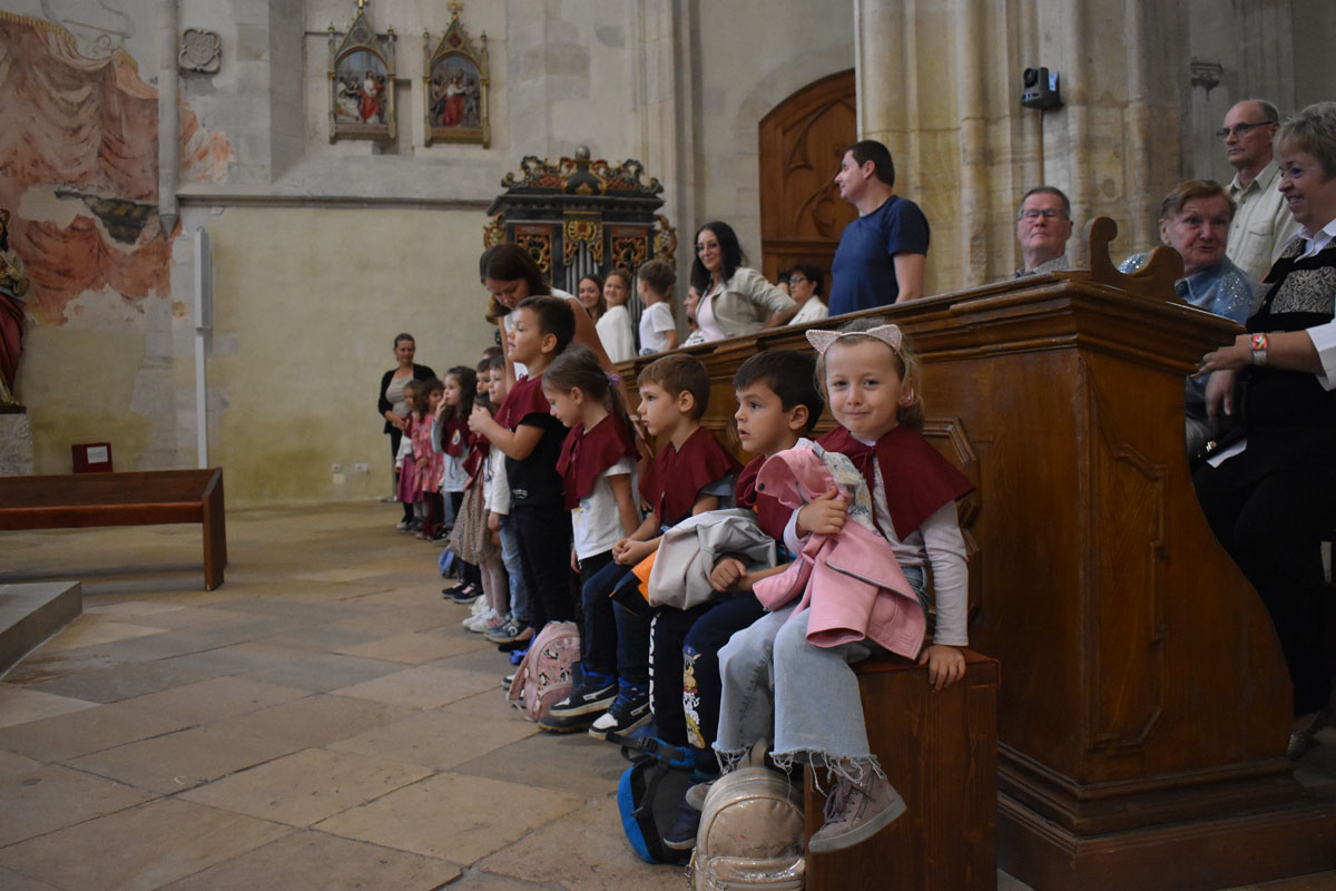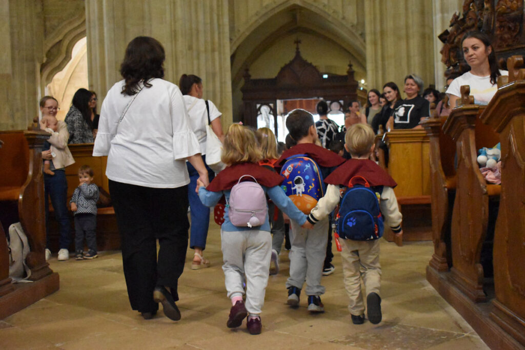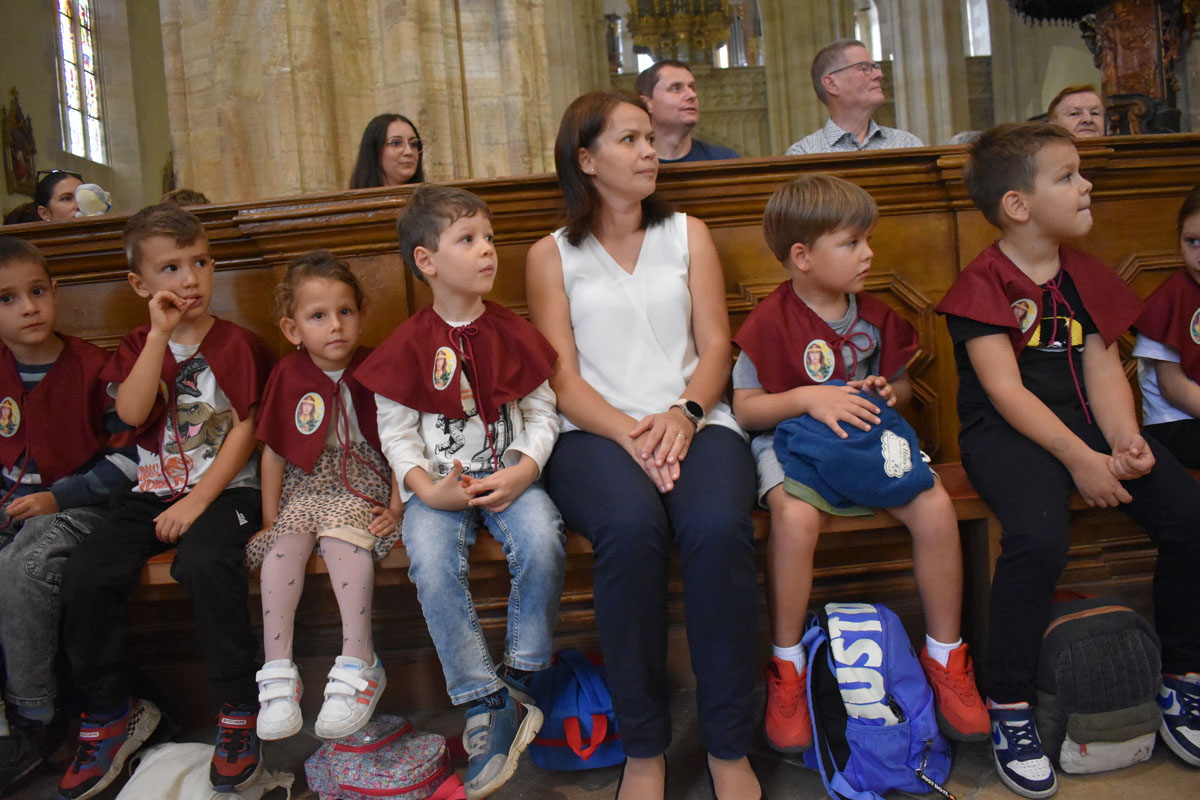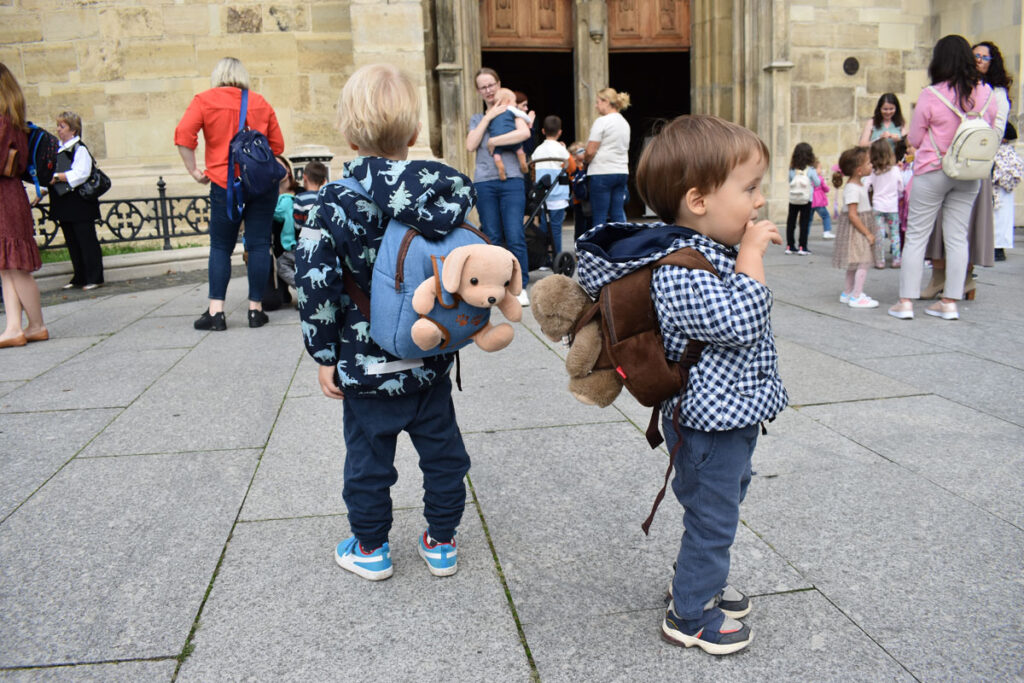 Izgatottan gyülekeztek a kisgyermekek szeptember 12-én, pénteken a kolozsvári Szent Imre Római Katolikus Óvoda udvarán. Az első óvodai hét lezárásaként a táskáik megáldására indultak el, hogy Isten oltalmát kérjék a tanév minden napjára. A Szent Mihály-templomban László Attila főesperes-plébános gitárral, énekszóval és történetekkel szólította meg a bölcsődéseket és óvodásokat. Arra hívta fel a kicsik figyelmét, hogy amikor a táskájukra áldást mond, valójában magukra a gyermekekre kéri a mennyei Atya oltalmát.