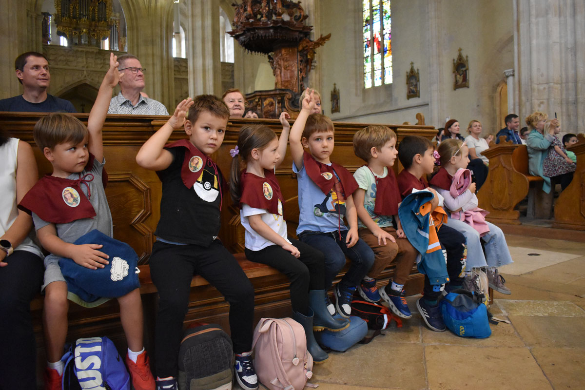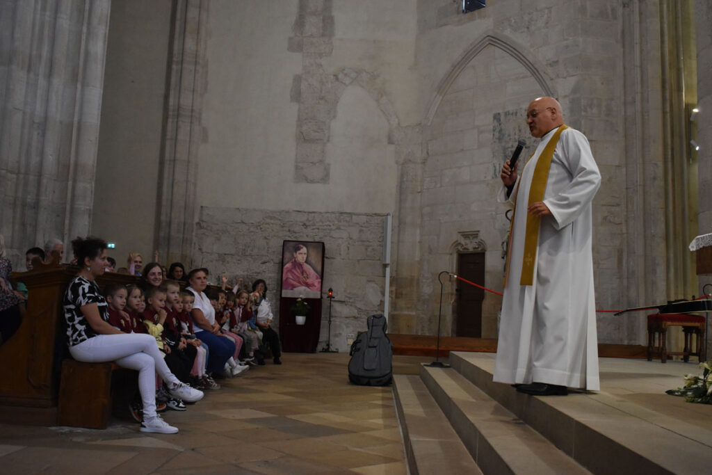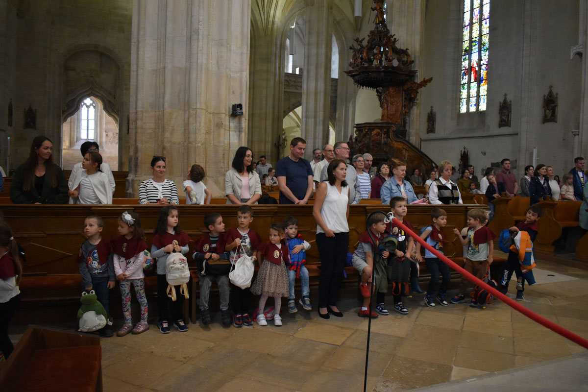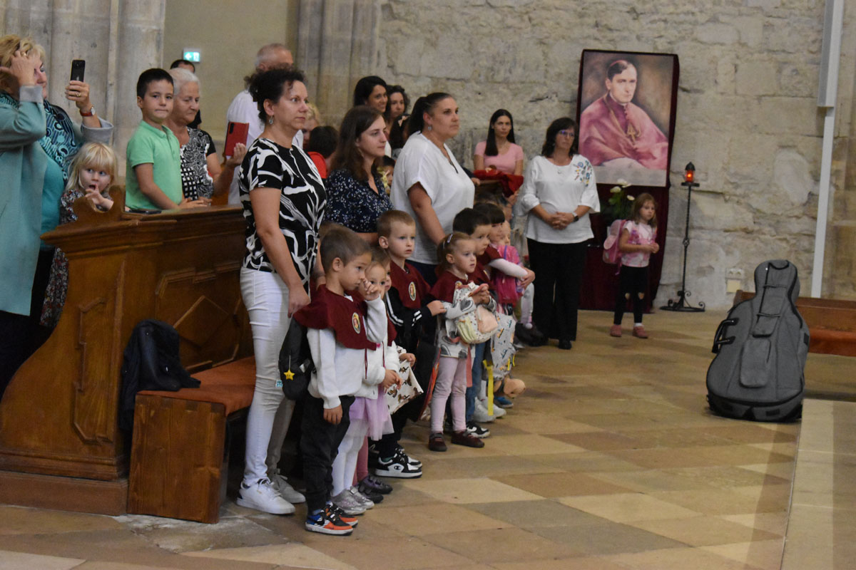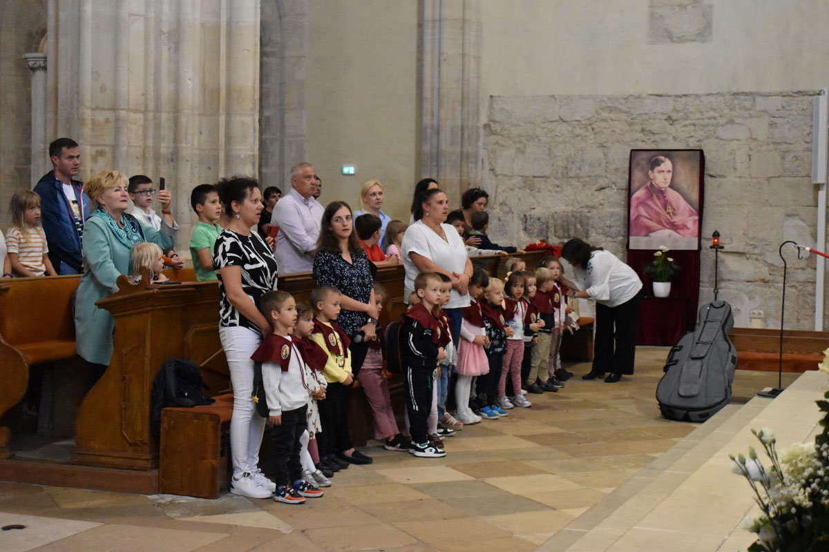 Izgatottan gyülekeztek a kisgyermekek szeptember 12-én, pénteken a kolozsvári Szent Imre Római Katolikus Óvoda udvarán. Az első óvodai hét lezárásaként a táskáik megáldására indultak el, hogy Isten oltalmát kérjék a tanév minden napjára. A Szent Mihály-templomban László Attila főesperes-plébános gitárral, énekszóval és történetekkel szólította meg a bölcsődéseket és óvodásokat. Arra hívta fel a kicsik figyelmét, hogy amikor a táskájukra áldást mond, valójában magukra a gyermekekre kéri a mennyei Atya oltalmát.