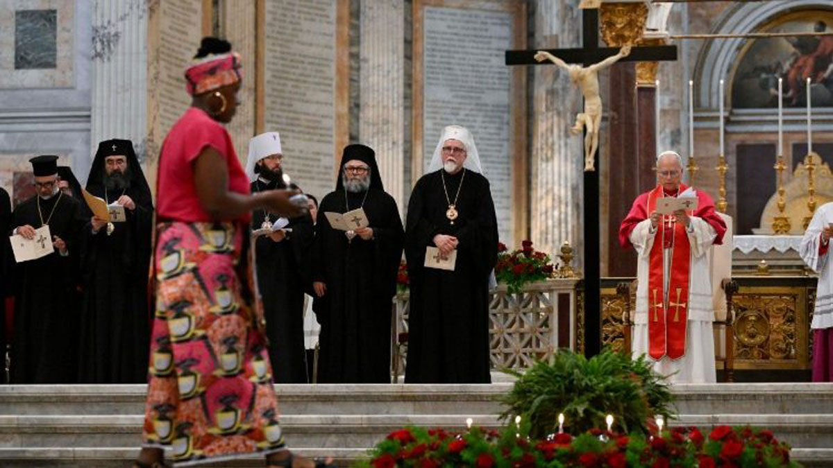 Az ökumenikus szertartást a bazilika oltárához vezető körmenet előzte meg, amelyet a pápa vezetett a keleti és nyugati keresztény egyházak és közösségek vezetőivel és küldötteivel. Homíliájában XIV. Leó pápa hangsúlyozta, hogy a hit vértanúi a halhatatlanság reményei, mert bár testüket megölték, hangjukat nem lehet kioltani, tanúságtételük megmarad, mint a jó rossz felett aratott győzelmének a próféciája. Az övék egy fegyvertelen remény, mert soha nem használtak erőszakot, hanem átölelték az evangélium gyenge és szelíd erejét. A pápa arra buzdított, hogy bátran tegyünk tanúságot hitünkről, hogy együtt egy békés és testvéries emberiség kovásza legyünk.
