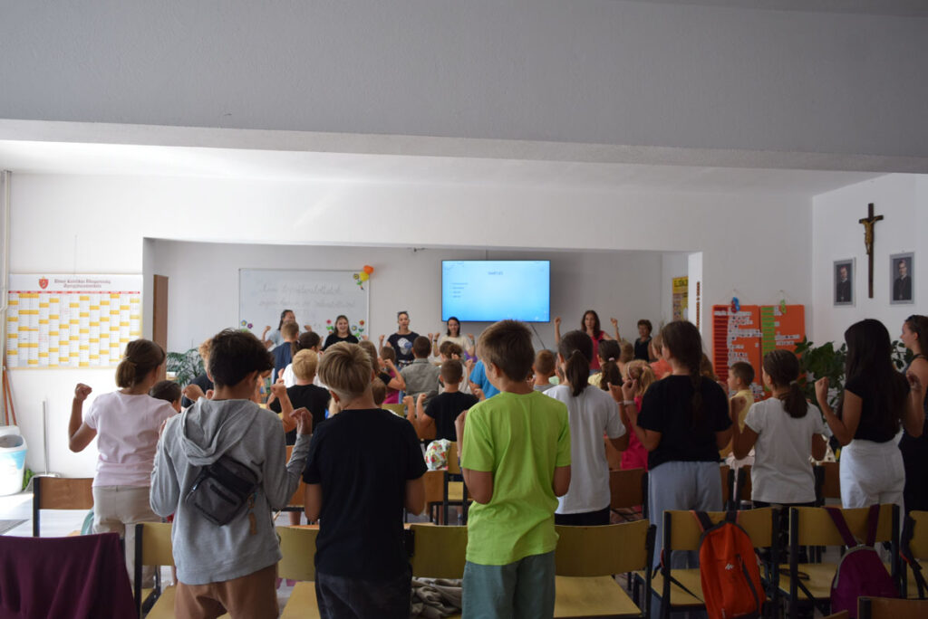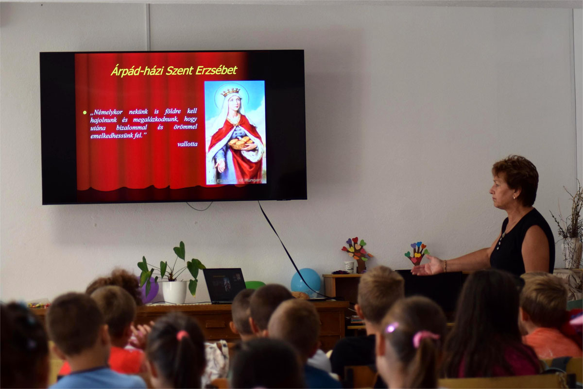 A vasárnapi szentmisén megáldották az iskolás- és óvodástáskákat, a szentmise után pedig a csoportok bemutatója következett. A két kiscsoport elénekelte az Árpád-házi Szent Erzsébet-éneket, a két közepes csoport plakátjukat mutatta be, a nagyobbak a Szent László-legendát jelenítették meg, majd egy csapattag, a 6. osztályos Ferencz Lilla gyönyörű hangján elénekelt egy Szent Erzsébet-éneket.