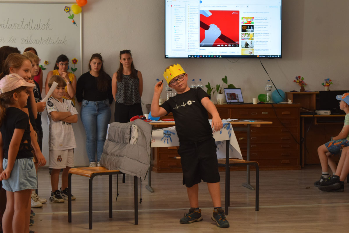 A 16 órakor érkező szülők megtekinthették az összefoglaló videót és két csoport bemutatóját, akik a Szent László füvéről, illetve pénzéről szóló legendákat jelenítették meg.