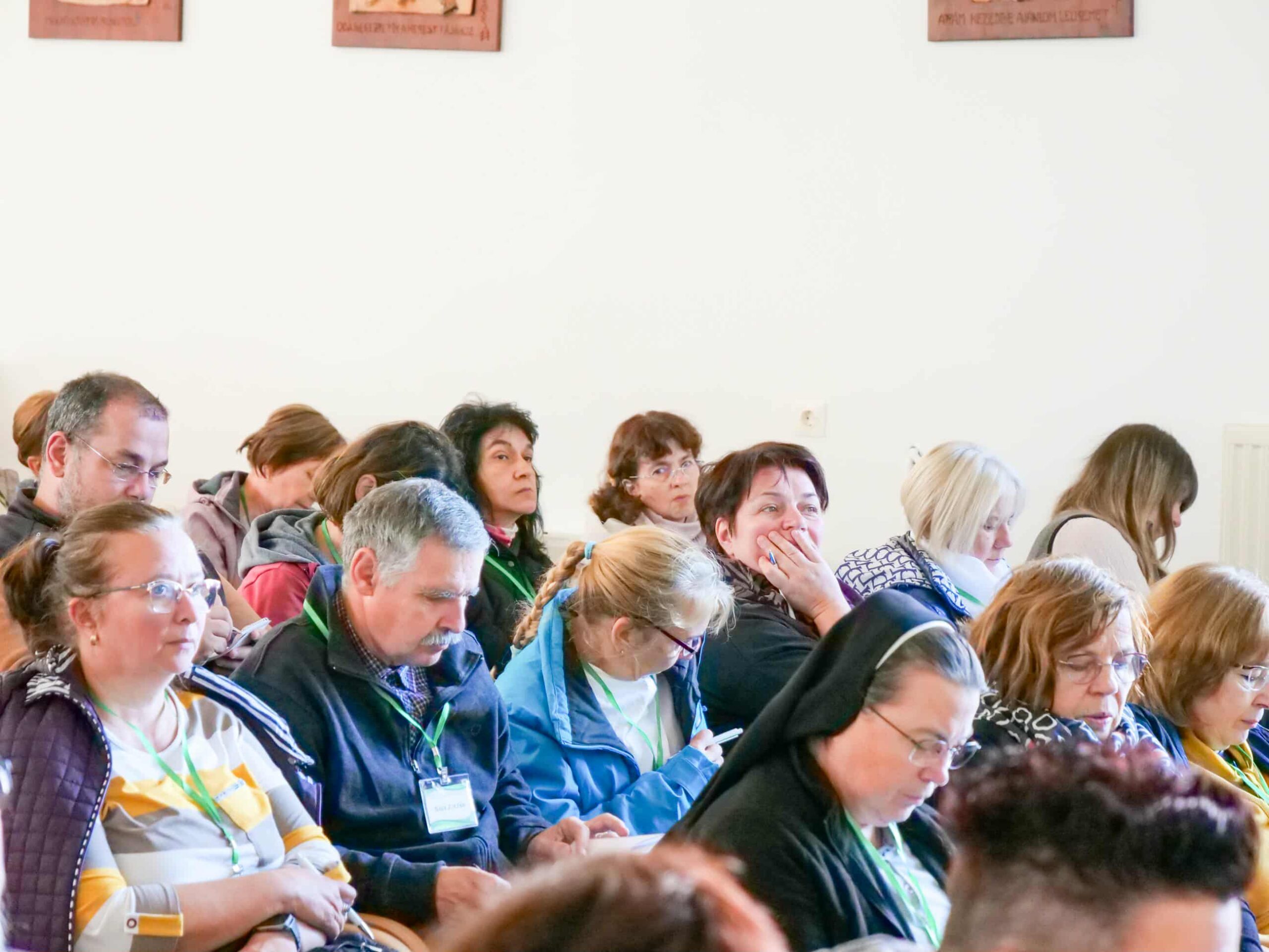 Az előadást kiscsoportos beszélgetések követték, ahol lehetőségünk nyílt megosztani gondolatainkat, tapasztalatainkat, és közösen keresni a válaszokat a felmerülő kérdésekre. Ezek a beszélgetések különösen értékesek voltak, hiszen a főegyházmegyéből érkező hitoktatók és tanfelügyelők megosztották a személyes történeteiket, szakmai kihívásaikat és örömeiket.