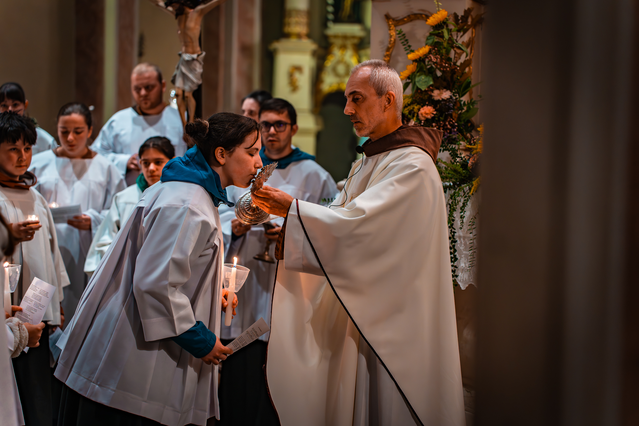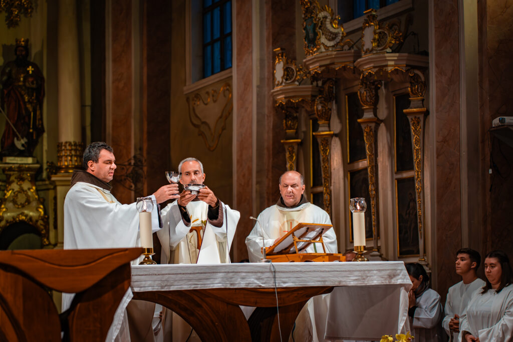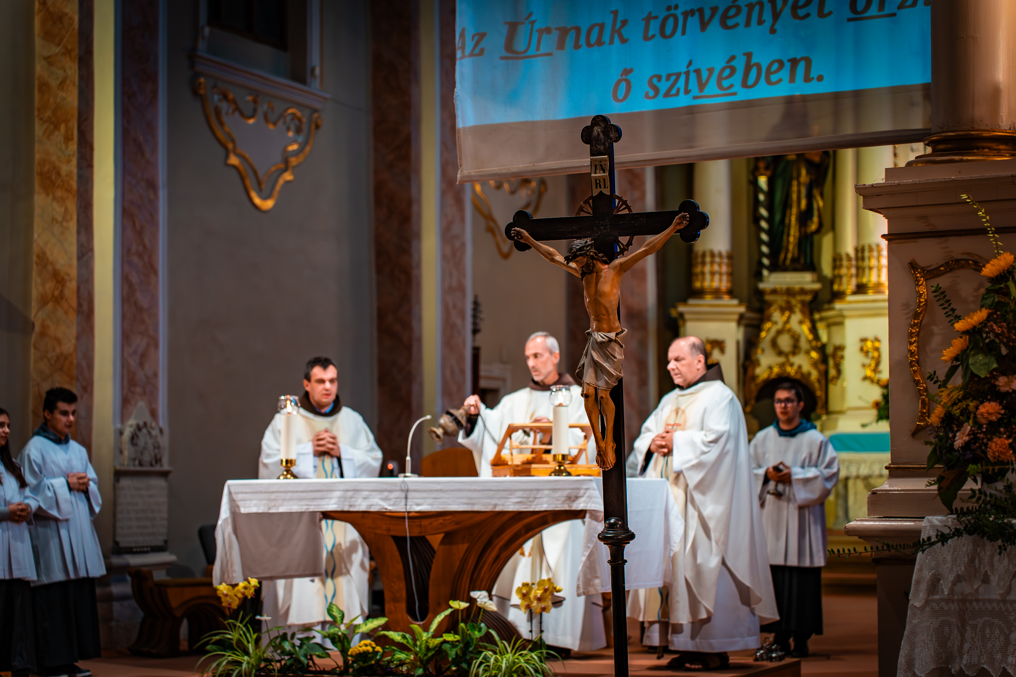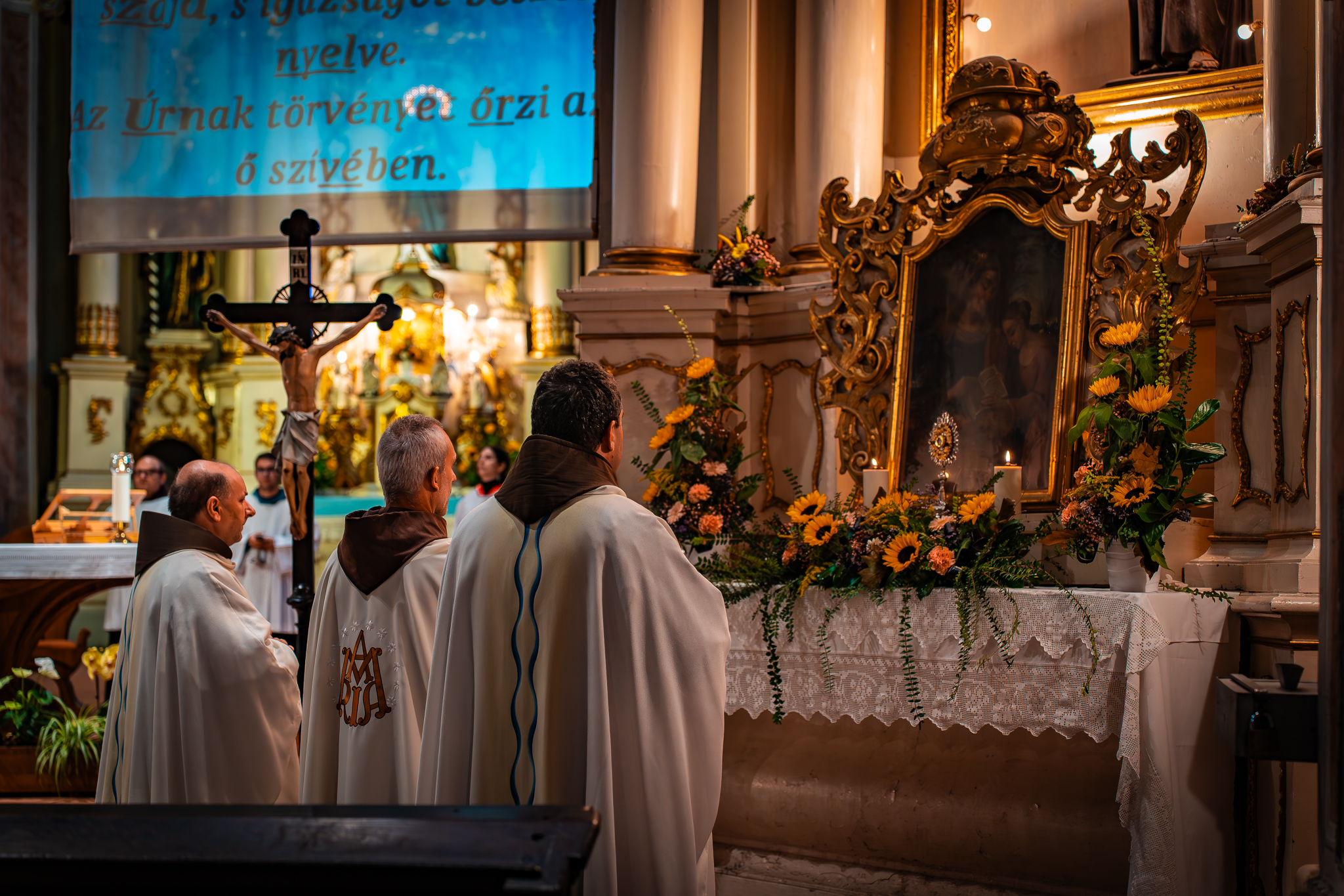 Szeretem a sportot, mostanában inkább nézni. Az atlétikai versenyeken a nézők a befutóvonal közelébe gyűlnek, hogy jól lássák a beérkező atléták győzelmét. Így tekintek Szent Ferenc tranzitusára is. A befutó versenyzőn látni lehet a felkészülési útját, a pályán legyőzött akadályokat, mindazt, ami mögötte van ahhoz, hogy a célba elérjen. Szent Pál apostol ezt így írja le magáról: „A jó harcot megharcoltam, a pályát végigfutottam, a hitet megtartottam. Most készen vár az igaz élet koronája, melyet az Úr megad nekem az igaz Bíró.” (2Tim4:7-8) Azt gondolom, Assisi Szent Ferenc tranzitusa nekem és mások számára is azt az üzenetet hordozza, hogy van egy célunk és az életünknek van egy Ura, Jézus Krisztus. Szent Ferenc elindul ezt az Urat szolgálni: az embertársain keresztül, amikor a leprást átöleli, az elcsendesedésekben, amikor a kereszt előtt térdel és figyel arra, hogy mit mond neki az Úr, amikor az evangéliumot hallgatja, és azonnal el is kezdi tettekre váltani. A tranzitus ünnepe – amikor a „győztest” szemlélem – megerősít abban, hogy Jézust helyezzem első helyre az életemben, legyen Ő a legnagyobb Úr, akit szolgálok – hangsúlyozta Albert Leander.