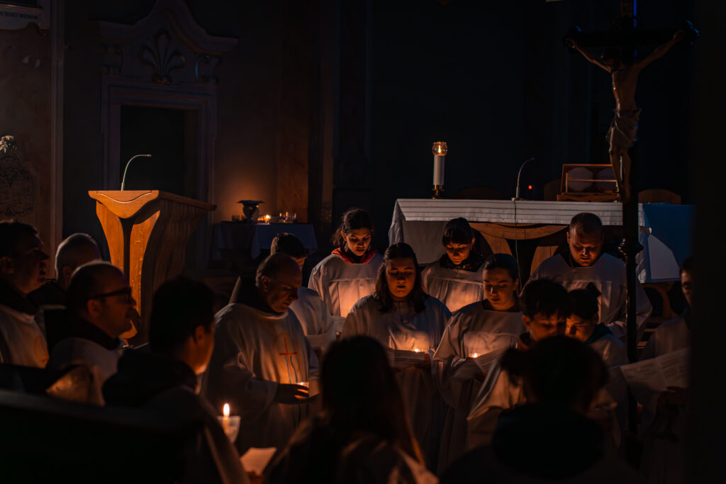 A szerzetesek a szentmise végén égő gyertyákkal vonultak a Szent Ferenc-oltárhoz, miközben ünnephez kapcsolódó éneket énekeltek. A megemlékezés kiemelkedő mozzanata a 141. zsoltár – „Börtönéből szabadítsd ki lelkem, szent nevedet, Uram, hadd dicsérjem. Örömmel várnak az igazak már, tudom, hogy énrám jutalom vár. Velem együtt szentek mondják ott fenn: dicsőség néked, Istenem” – eléneklése volt. A testvérek a zsoltár éneklése közben térdre borultak, hiszen az idézett sorok imádkozása után Szent Ferenc ajka örökre elnémult. Az ima végén a halál jelképeként leoltották a villanyt, közben a szerzetesek csendben imádkoztak, ahogyan azt Szent Ferenc is tette. Néhány perc múlva visszakapcsolták a lámpákat, ezáltal is megjelenítve a feltámadás örömét.
