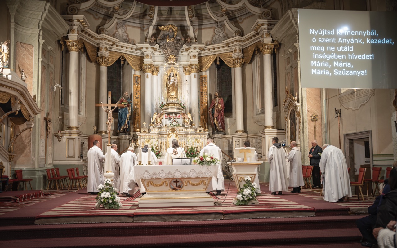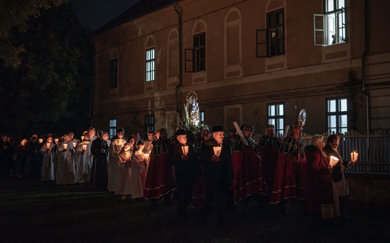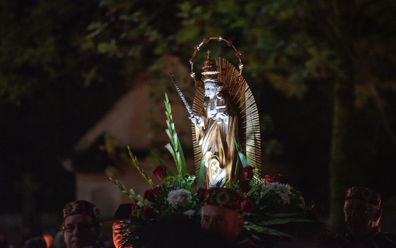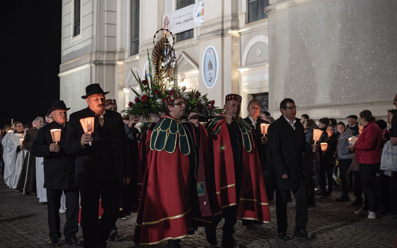 A szentmise után ugyancsak a gyergyószentmiklósi Munkás Szent József és az örmény katolikus plébánia híveinek vezetésével a dicsőséges rózsafüzért imádkozták a zarándokok. A gyertyás körmenetben a gyergyói hívek vitték a Szűzanya kegyszobrának másolatát. Az ünnepet a Mária Rádió és a kegyhely YouTube-csatornája élőben közvetítette. A következő Mária-köszöntő november elsején lesz.