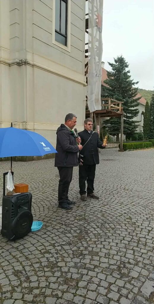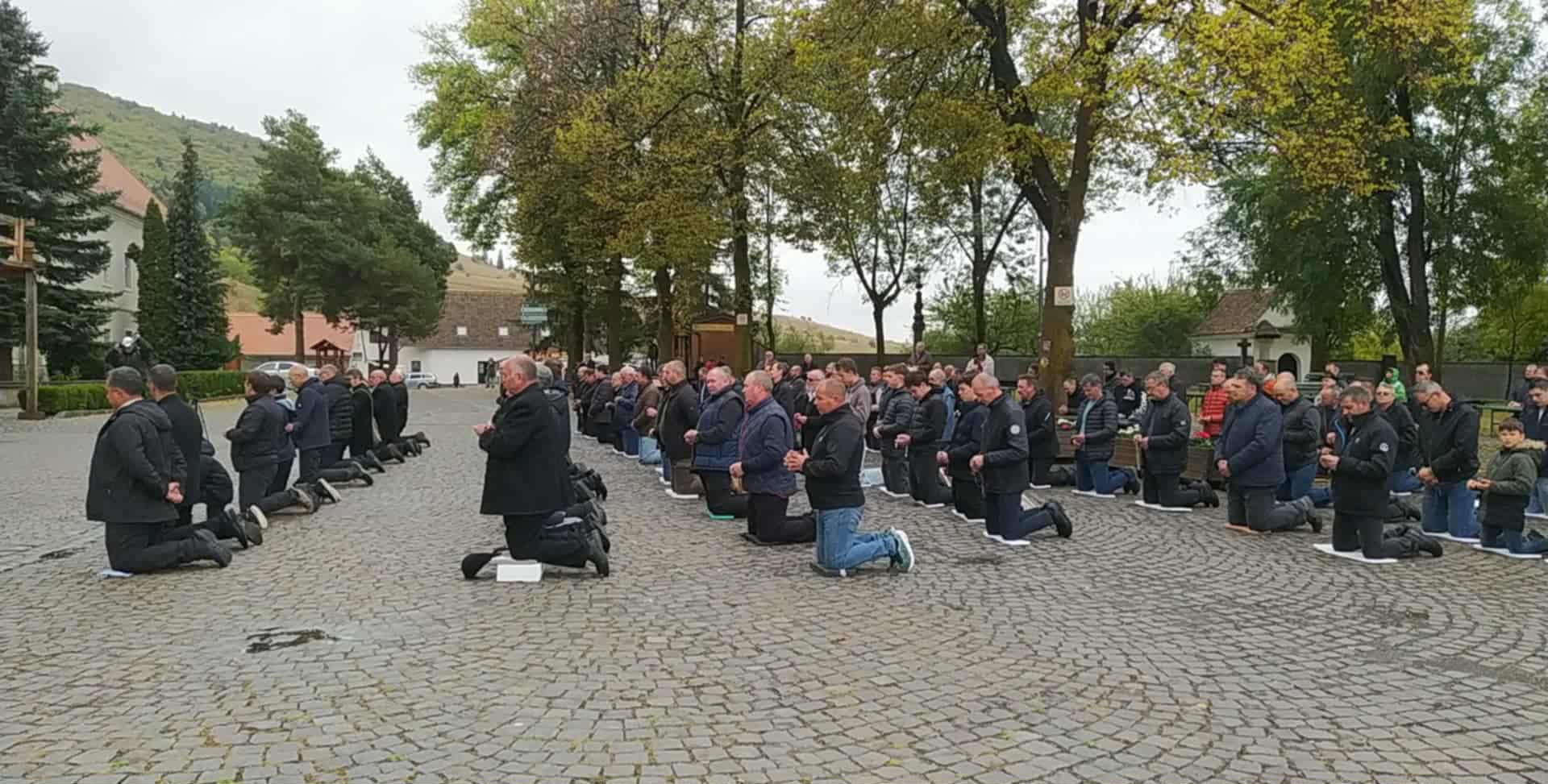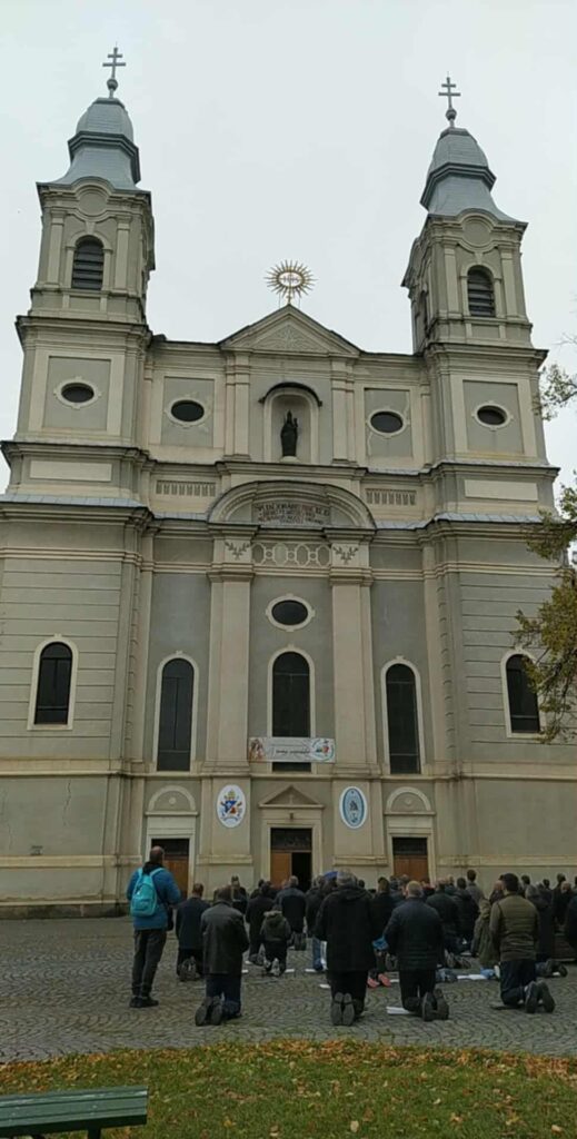 A kegytemplom előtt térdelve, a Szűzanyához fohászkodókhoz ezúttal csatlakoztak az éppen a Jakab Antal Tanulmányi Házban tartott Mária-út Konferencia résztvevői is. Péterfi Attila elmondta, kezdetben tizenkét közösség tagjai vállalták, hogy havonta egyszer vezetik az imát, ám azóta tizennégyre bővült a lelkes férfiközösségek száma. Az is öröm számukra, hogy minden korosztály tagjai jelen vannak.