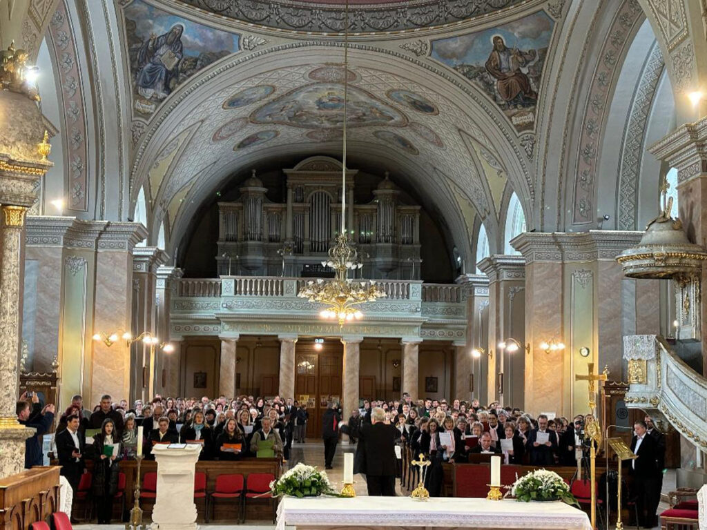 A rendezvény a jubileumi szentév jegyében zajlik, és délelőtt 10 órakor püspöki szentmisével veszi kezdetét, amelyet Schönberger Jenő szatmári megyés püspök mutat be. A szentmisében hálát adnak a zene és az ének ajándékáért, valamint mindazokért az önzetlen szolgálattevőkért, akik hétről hétre próbát tartanak plébániájukon, hogy közös énekükkel a liturgia szépségét gazdagítsák, és másokat is segítsenek mélyebben bekapcsolódni Isten dicsőítésébe.