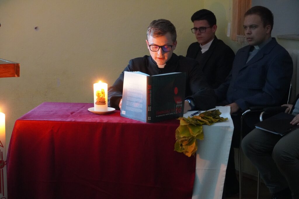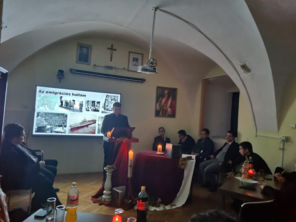 Az est elején Antal Endre V. éves kispap, az EMEI új elnöke köszöntötte az egybegyűlt elöljárókat és kispapokat. Ezután kezdetét vette a szakosztály tagjainak előadásai, amelyekben a forradalom egy-egy aspektusát fejtették ki, többek között az 1956. október-novemberi magyarországi események előzményeit, vonatkozásait az erdélyi magyarságra, valamint a katolikus egyházra, neves alakjait és utóhatásait a magyar nemzetre nézve.