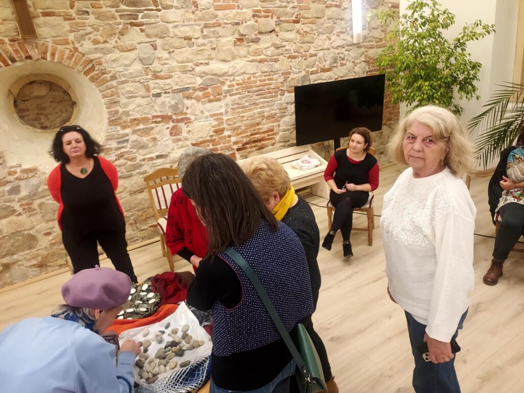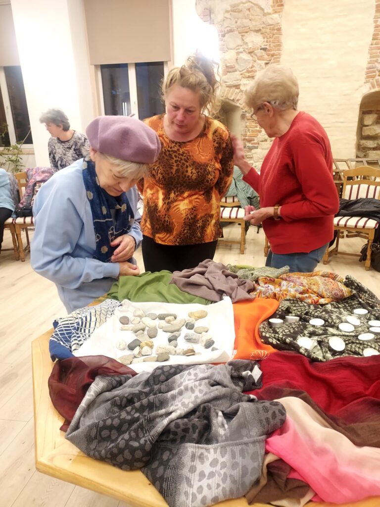 Az elméleti ismertető után beszélgetés következett, gyertyát, követ lehetett emlékeztetőként választani, és ez már meg is nyitotta a „csapokat”, néhányan nagyon megrázó, megrendítő módon idézték elvesztett szerettük emlékét. A szülő elvesztése akkor sem könnyű, ha úgymond „ott van az ideje”, különösen egy összeszokott, összenőtt, szép családi harmóniában. Az egyszeri gyász is megpróbálja a hátramaradottakat, de amikor egy családban rövid idő alatt több halál következik be, embert próbáló az egyensúlyt újra megtalálni, a saját életbe, az élet folytatásához visszatalálni. Kétségtelenül a legmegrázóbb a gyermek elvesztése, az erről szóló megosztásokat a teremben mindenki megkönnyezte.