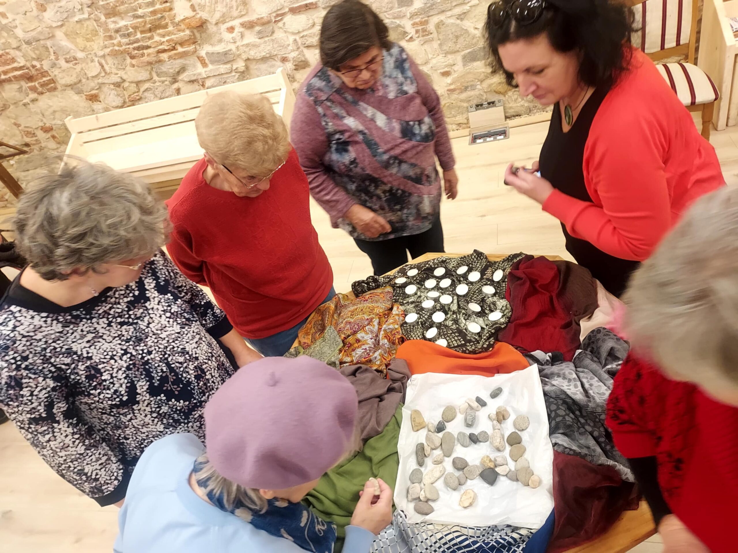Az elméleti ismertető után beszélgetés következett, gyertyát, követ lehetett emlékeztetőként választani, és ez már meg is nyitotta a „csapokat”, néhányan nagyon megrázó, megrendítő módon idézték elvesztett szerettük emlékét. A szülő elvesztése akkor sem könnyű, ha úgymond „ott van az ideje”, különösen egy összeszokott, összenőtt, szép családi harmóniában. Az egyszeri gyász is megpróbálja a hátramaradottakat, de amikor egy családban rövid idő alatt több halál következik be, embert próbáló az egyensúlyt újra megtalálni, a saját életbe, az élet folytatásához visszatalálni. Kétségtelenül a legmegrázóbb a gyermek elvesztése, az erről szóló megosztásokat a teremben mindenki megkönnyezte.