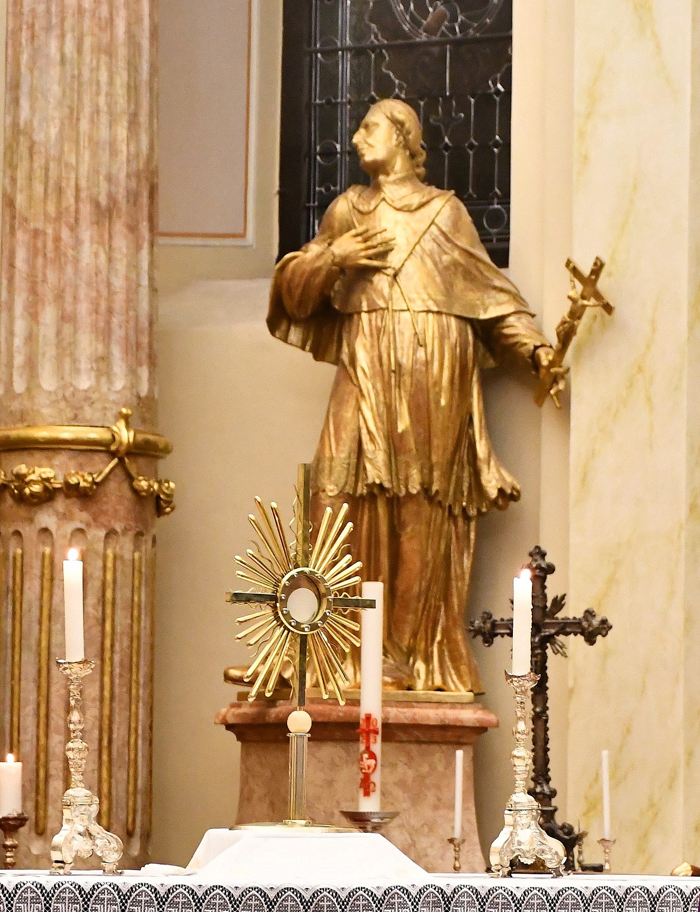 Martin Roos temesvári nyugalmazott püspök Erbe und Auftrag című művében (I/2a. kötet, 2. fejezet) néhány sort idéz a temesvári jezsuita szerzetesek naplójából, amelyet 1739. május 30-án, közvetlenül a várost is sújtó pestisjárvány után vetettek papírra. A hálaadó szentmise előkészületeinek leírása, amelyet 1739. május 31-én, vasárnap ünnepeltek, megemlíti, hogy a főoltár egyik festett tábláján Szent Károly Borromeo alakja is látható. Akkoriban tehát már Temesváron is tisztelték ezt a szentet.