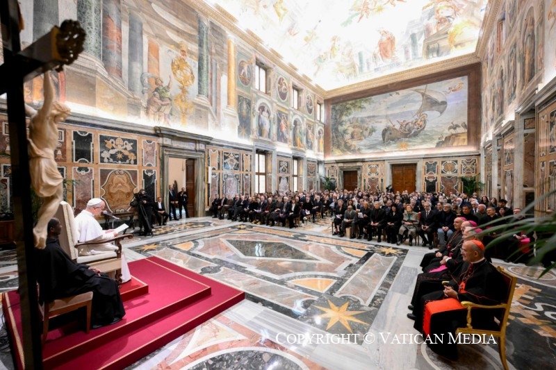 A szentévben az egyház arra hív minket, hogy zarándokoljunk a remény felé. A filmvilág képviselőinek jelenléte és mindennapos művészi munkája fényes jel. Mert ahogy a világ minden részéről Rómába érkező zarándokok, úgy ők a képzelet zarándokaiként vándorolnak; értelemkeresők, a remény elbeszélői, az emberség hírvivői. Az általuk megtett utat nem kilométerben mérik, hanem képekben, szavakban, érzésekben, megosztott emlékekben és közös vágyakban. Az emberi tapasztalat misztériumának zarándoklata ez, mely képes fölismerni a szépséget a fájdalom sebeiben is, meglátni a reményt az erőszak és a háború tragédiája közepette. Az egyház megbecsüléssel tekint a filmvilág képviselőire, akik a fénnyel és az idővel dolgoznak, arcokkal és tájakkal, szóval és csenddel. Szent VI. Pál azt mondta, hogy ha ők az igazi művészet barátai, akkor az egyház barátai is. A világnak, amelyben élünk szüksége van a szépségre, hogy ne zuhanjon kétségbeesésbe. Leó pápa is megújította ezt a barátságot, mert a mozi a remény laboratóriuma, olyan hely, ahol az ember rátekinthet önmagára és önnön sorsára. Legyen a mozi a Lélek művészete – kérte őket a szentatya.