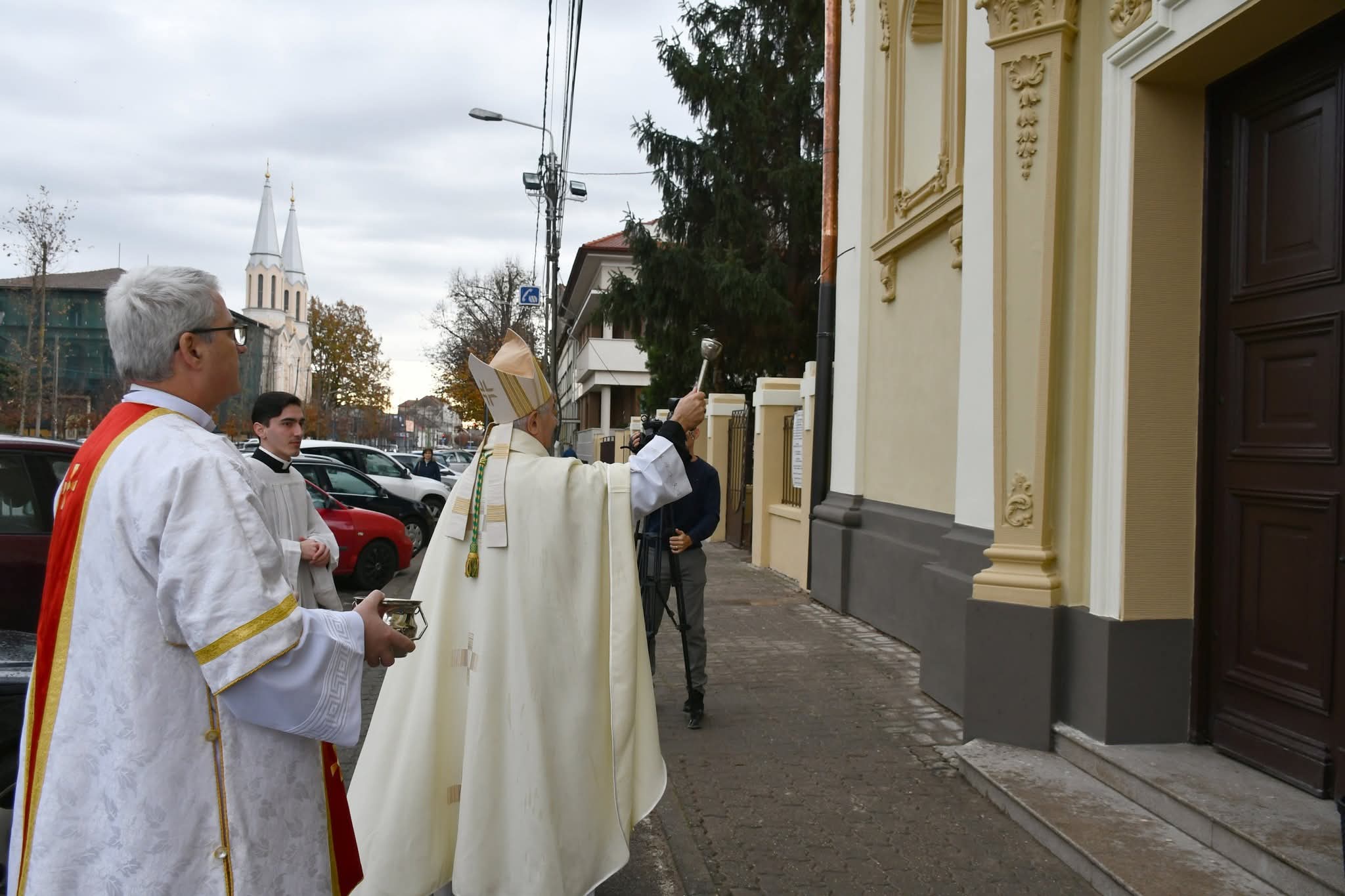,,Ez a 250 éves templom városrészünk lelki központja, és 1772–1775 között épült. A kőből emelt templom a közösség élő jele. Püspök atya, köszönjük, hogy eljött hozzánk, és közösségünk nevében kérem, áldja meg a felújított templomot. Imádkozzon értünk, hogy egyre inkább élő és missziós közösséggé váljunk” – fogalmazott a plébános. A szentmisén koncelebrált Gheorghe Augustinov, a temesvári bolgár személyi plébánia plébánosa, Kocsik Zoltán, a piarista templom igazgatója és Branko Duma helyi segédlelkész. Az oltárnál szolgált Baum Péter aradi és Horváth Rémusz magyarországi diakónus. A liturgián jelen volt Dominic Fritz, Temesvár város polgármestere, Molnár András parlamenti képviselő, az RMDSZ Temes megyei elnöke, Fekete-Nagy László, a Romániai Máltai Szeretetszolgálat temesvári filiájának elnöke, Iliescu Júlia, a Bartók Béla Elméleti Líceum igazgatóhelyettese. A szentmise zenei szolgálatát a Laudate Dominum énekkar és a Szeretethangok gyermekkórus végezte.