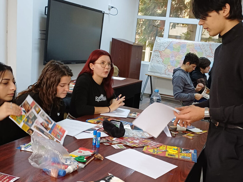 November 7-én az Avram Iancu és a Traian Vuia Technológiai Líceumokból két-két fiatal vett részt az első tájékoztatóanyag-készítő műhelyen a marosvásárhelyi Caritas Házban. A tanulók két csoportot alkottak. Az egyik diákpáros rövid TikTok-videók forgatókönyvein dolgozott, amelyeket kortársaik érzékenyítésére szántak a tudatos és korlátozott digitális eszközhasználat, valamint az alkohol-, drog- és más függőségek megelőzésének témáiban. A másik csoport tagjai egy szórólaphoz írtak szövegeket, amelyeket szüleik számára állítottak össze figyelemfelkeltés, tudatosítás és érzékenyítés céljából a túlzott okoseszköz-használat, valamint a függőségeket okozó szerek káros hatásai kapcsán. A november 14-ei műhelyfoglalkozáson a fiatalok arculati elemekkel látták el a szövegeket Sárkány Noémi grafikus segítségével.