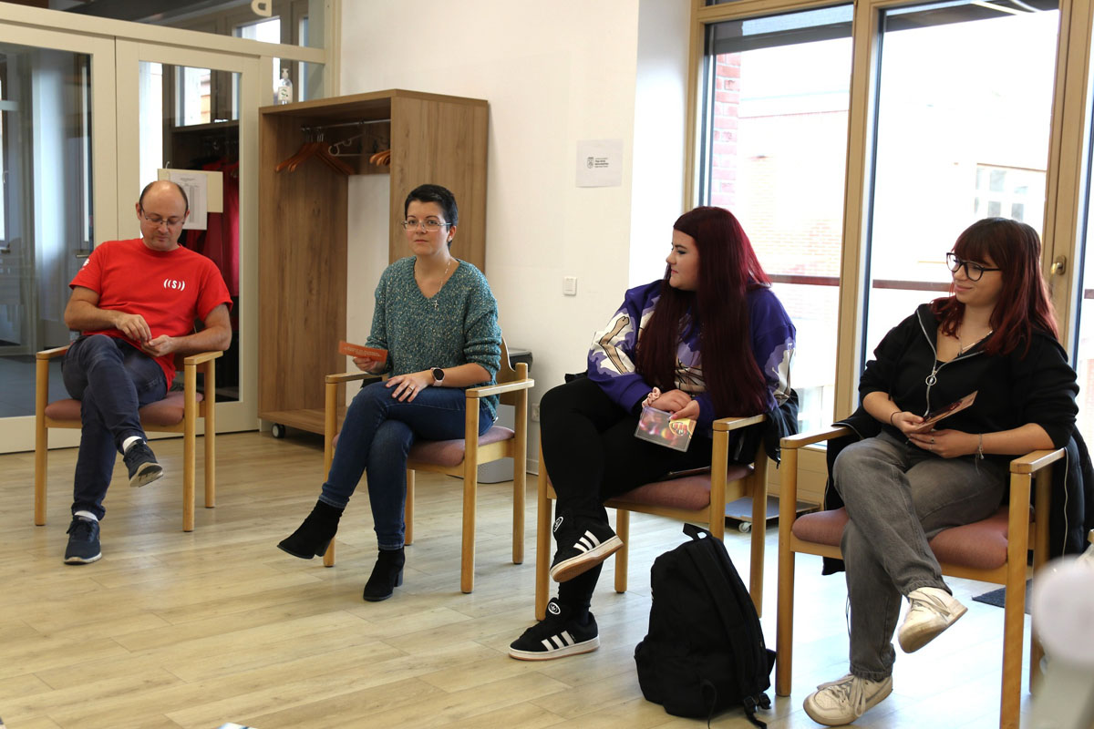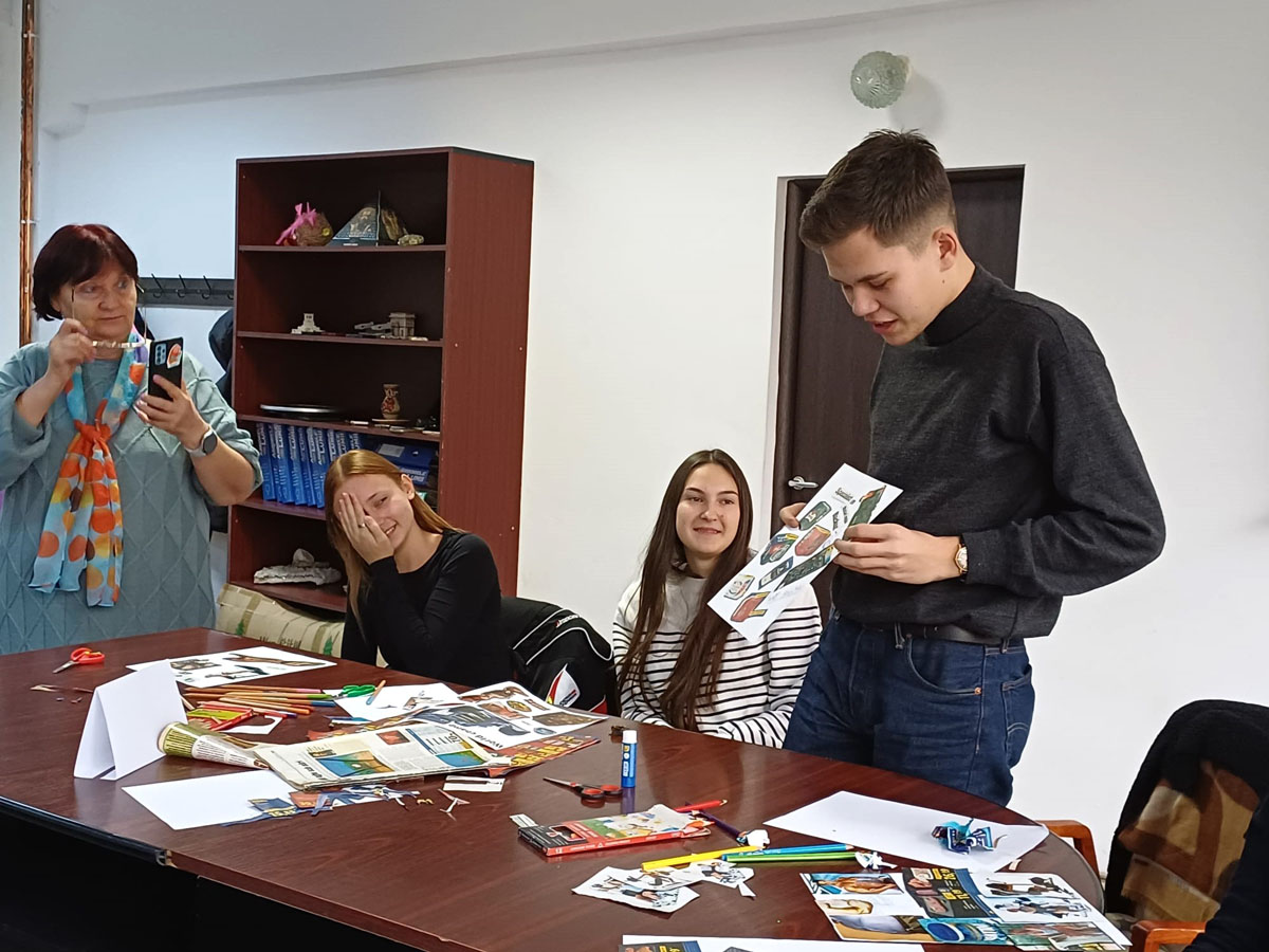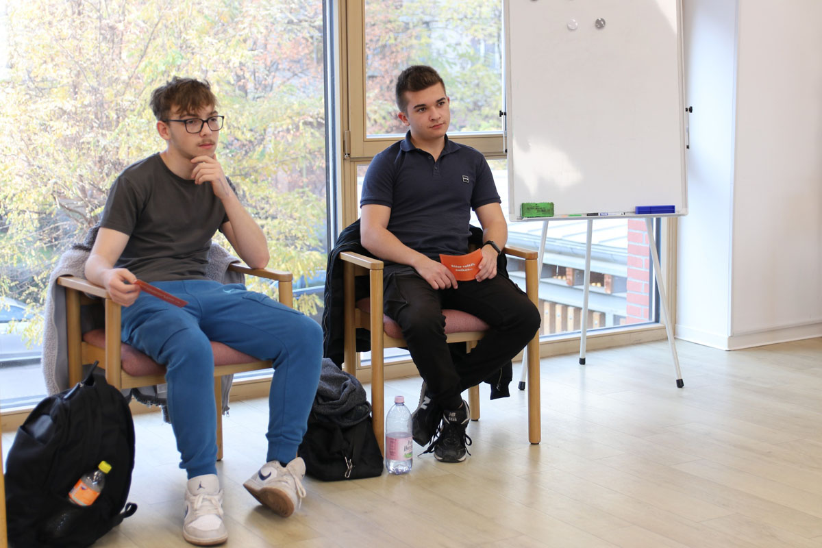 November 7-én az Avram Iancu és a Traian Vuia Technológiai Líceumokból két-két fiatal vett részt az első tájékoztatóanyag-készítő műhelyen a marosvásárhelyi Caritas Házban. A tanulók két csoportot alkottak. Az egyik diákpáros rövid TikTok-videók forgatókönyvein dolgozott, amelyeket kortársaik érzékenyítésére szántak a tudatos és korlátozott digitális eszközhasználat, valamint az alkohol-, drog- és más függőségek megelőzésének témáiban. A másik csoport tagjai egy szórólaphoz írtak szövegeket, amelyeket szüleik számára állítottak össze figyelemfelkeltés, tudatosítás és érzékenyítés céljából a túlzott okoseszköz-használat, valamint a függőségeket okozó szerek káros hatásai kapcsán. A november 14-ei műhelyfoglalkozáson a fiatalok arculati elemekkel látták el a szövegeket Sárkány Noémi grafikus segítségével.