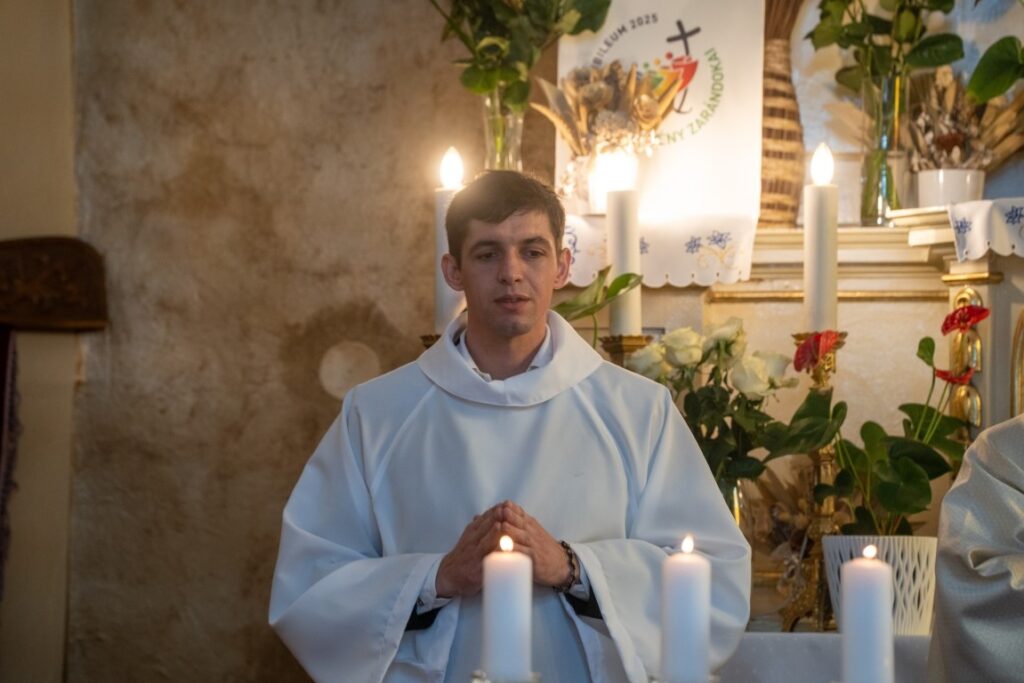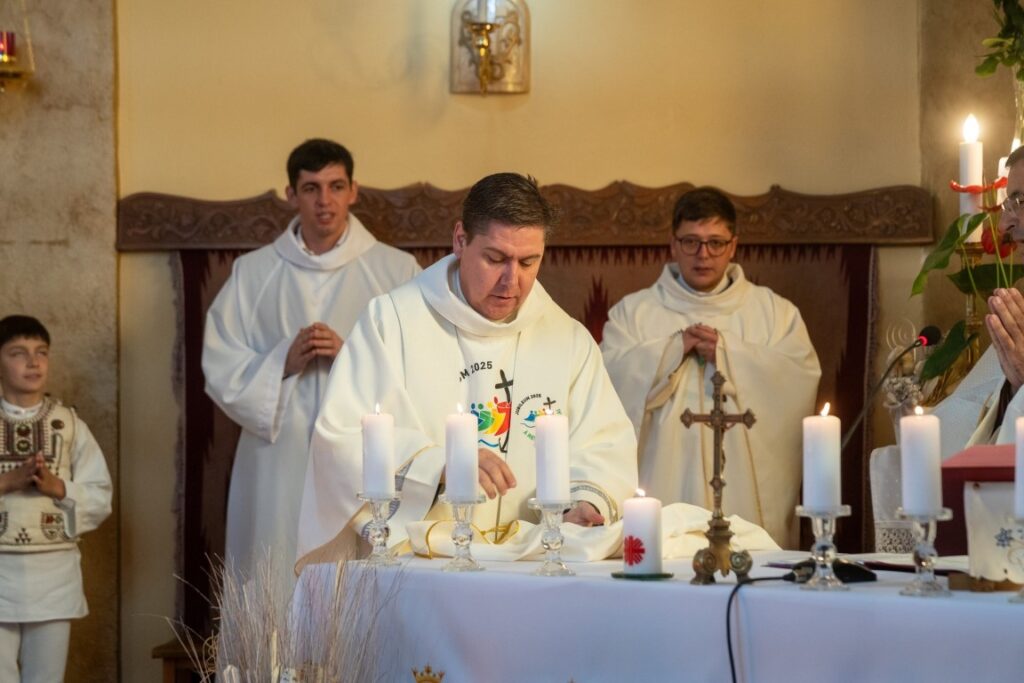 Kedves testvérek! A mai napon különös örömmel és hálával köszöntöm Kajtár Arnold testvérünket, a gyimesközéploki, kosteleki és magyarcsügési híveim nevében, aki most az akolitusi szolgálatba lépett. Izajás próféta szavai jutnak eszembe: „Mielőtt megszülettem, már anyám méhében ismertelek, és szentté tettelek, hogy szolgálatommal hirdessem az Úr dicsőségét. Ezek a szavak most különösen is igazak Kajtár Arnold kántor életére. Az Úr már a kezdetektől formálta őt, vezette útját, s a papnevelő Intézetben töltött évek alatt különleges módon érlelte hivatását. Bár nem a papság útján folytatta, az Úr nem engedte el a kezét, hanem új szolgálatra hívta őt, hogy lelkipásztori kisegítőként továbbra is az ő házában, az Oltáriszentség közelében szolgáljon. Amióta 2024 októberében közösségünkbe érkeztél, mindannyian megtapasztalhattuk hűségedet, lelki mélységedet, csendes alázatodat és zenei szolgálatodnak gazdagságát.