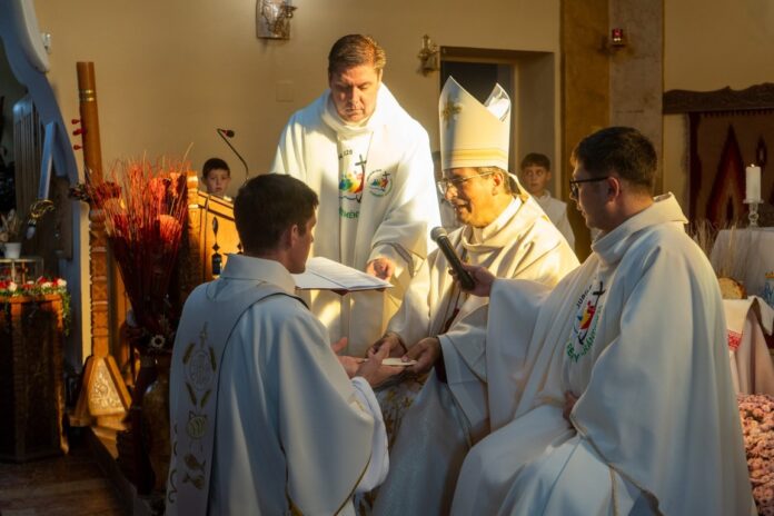 A szentbeszéd elhangzása után a jelenlévők megvallották közösen hitüket, majd a püspök megszentelte a jelölt liturgikus ruháit, melyet magára öltve az oltár elé térdelve fogadta a főpásztor és a közösség részéről az imát. Ezt követően a püspök elé járulva részesült a küldetésben, amikor átvette a paténán az Eucharisztia ünneplésére előkészített kenyeret (ostyát), és közben hallhatta a felhívást: Úgy élj, hogy méltóképpen szolgálhass az Úr és az egyház asztalánál!