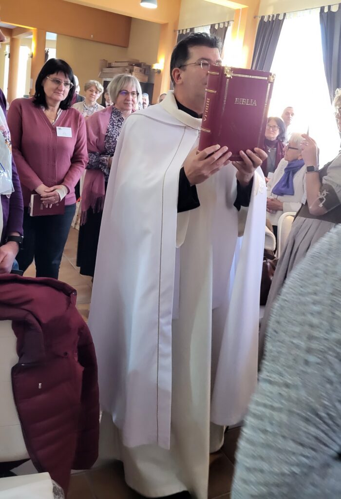 A biblianap programját megtisztelte Palkó Ágoston járai plébános, aki a vásárhelyi csoportot hozta, és jelenlétével gazdagította a rendezvényt. A nap a Szentírás trónraemelésével kezdődött igeliturgia keretében, Márton József székelyudvarhelyi főesperes vezetésével. Olyan igéket olvastak fel, amelyek erősítették a résztvevőkben annak tudatát, hogy jó együtt lenni és az Úrra hallgatni. Az ő jelenlétében folyatódott a program a Babeș–Bolyai Tudományegyetem Teológia Karának tanára, Oláh Zoltán előadásával, aki a bibliatársulat tiszteletbeli elnöke, és aki mindig szívesen és örömmel szánja tudását, idejét, szeretetét a társulat számára.