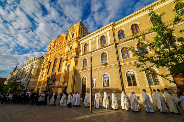 Van azonban valami, amiben mindannyian egyszerre lehetünk benne, amiből egyszerre vehetjük ki a részünket, függetlenül attól, hogy csupán résztvevői, előkészítői stb. vagyunk: az ünnepek. Legyen szó tanévnyitó vagy tanévzáró szentmiséről, ahol sokszínű egységünket (nép)viseletben fejezzük ki, őszi kirándulásról vagy nyári jubileumi római zarándoklatról, ahol a közösségiség mellett mindig kiemelt szereppel bír az ima/a szentségimádás/a szentmise is, vagy legyen szó egy templom szentelésére való megemlékezésről: ünnep, amely egymással és a jó Istennel kapcsol össze (liturgia). A piarista templom 300 éve áll a Szentháromság oltalmában, május 13-án pedig, napra pontosan a szentelés évfordulóján kiemelkedő módon ünnepeltünk szentmisével, körmenettel, Light of Night szentségimádással. Kéréseink között talán az egyik legerősebb ez volt: a következő 300 év is a Szentháromság oltalmában legyen. A lelkészség működésének 33. évét, a templom fennállásának 301. évét és a piaristák Kolozsváron való letelepedésének 250. évét ezek az irányok segítik, hogy fiatal felnőtt egyetemisták, akik az Egyetem utcába betérnek és katolikus közösségre vágynak, valamelyest otthonra találjanak, barátokra és valódi társakra leljenek – hogy horizontálisan és vertikálisan kapcsolódni tudjanak.