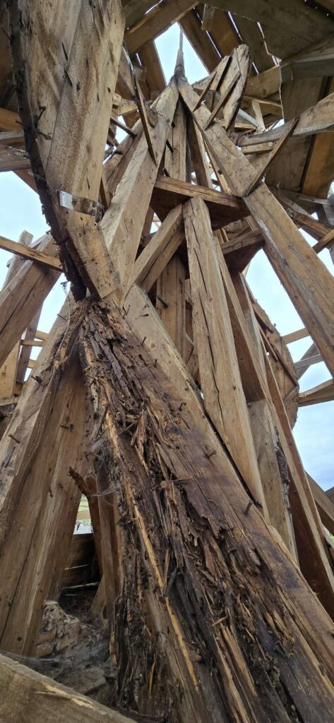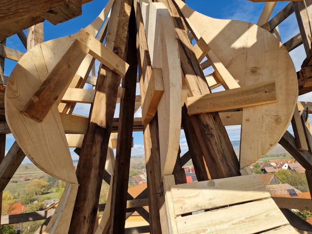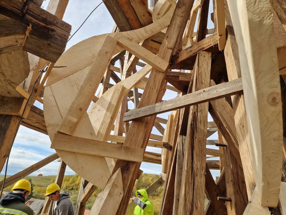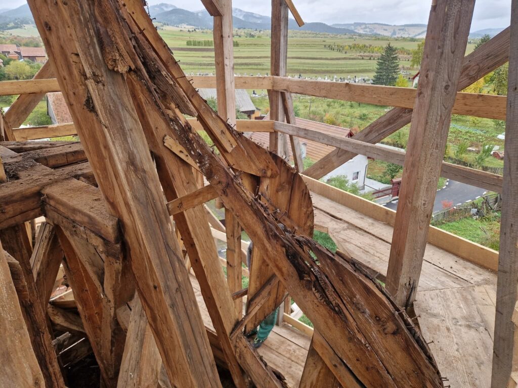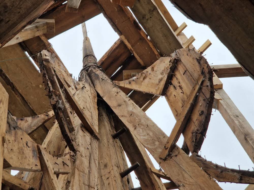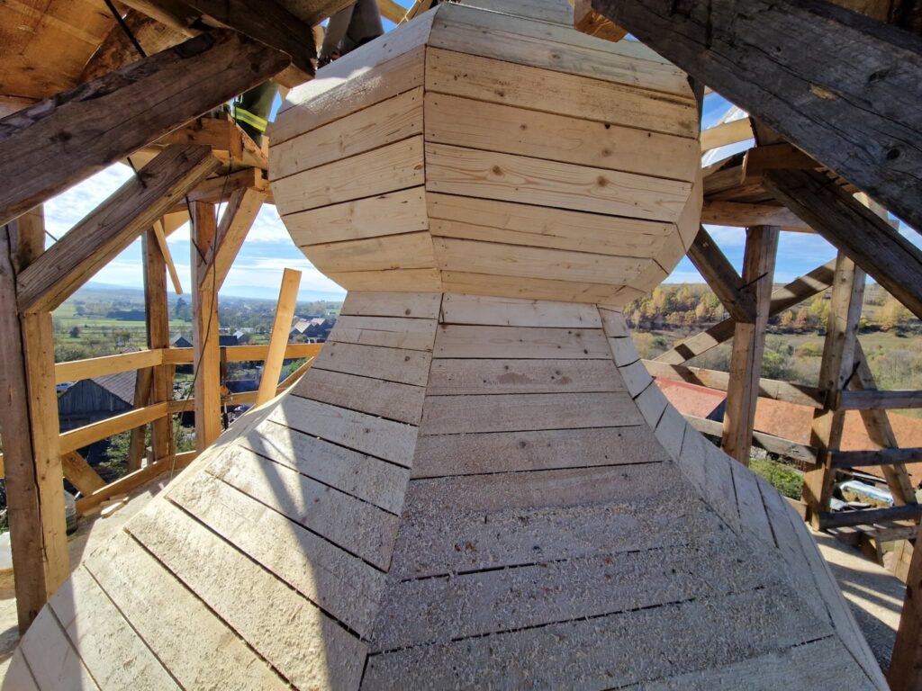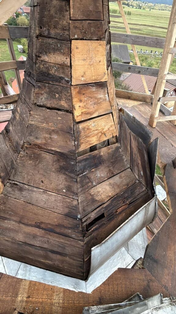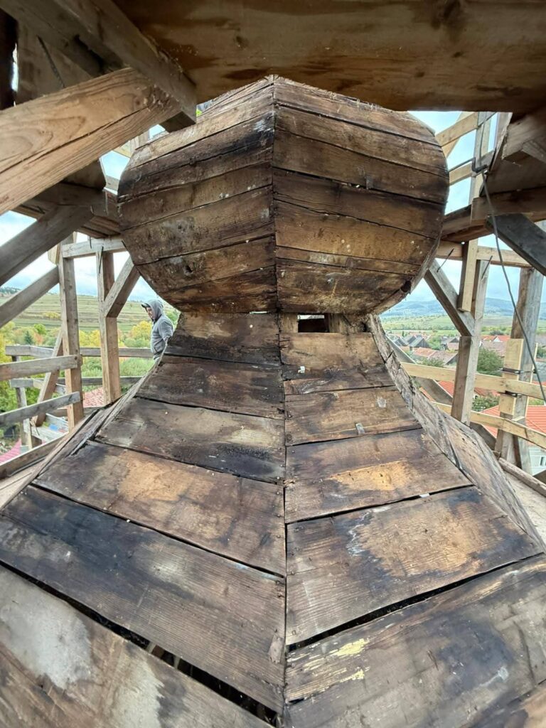 Szeptemberben elkezdődött az ajnádi templom külső felújításának második szakasza. A kivitelező, a csíkszeredai Impex Aurora kft. első lépésben felmérte a toronysisak állapotát, annak eredményeként született döntés a lemez teljes cseréjéről és a faanyag részleges cseréjéről. Sajnos a lemez nagyon elvékonyodott, több helyen meglyukadt és mohásodás, ázás nyomok voltak több helyen.