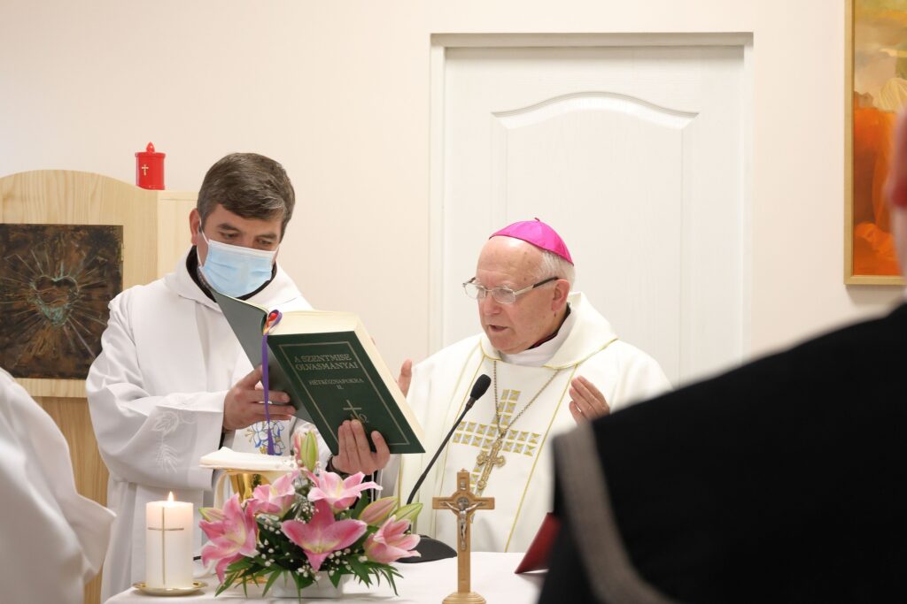 A szentmisét Tamás József nyugalmazott segédpüspök celebrálta, és a homíliát is ő mondta. Szentbeszédében kihangsúlyozta, a kápolna Isten szeretetének a színhelye. „Velünk van Jézus életünk örömeiben is. És velünk van a szomorúságainkban. (…) Velünk akar lenni az Úr Jézus életünk minden körülménye között. És minden templom, minden kápolna erre figyelmeztet bennünket” – fejtette ki.
