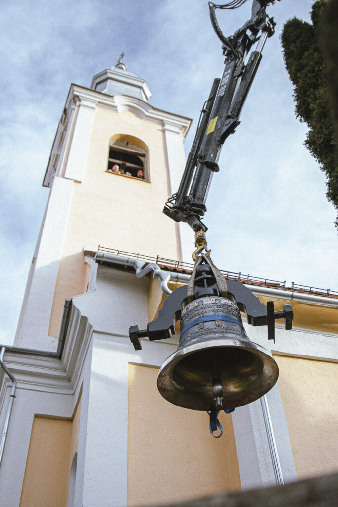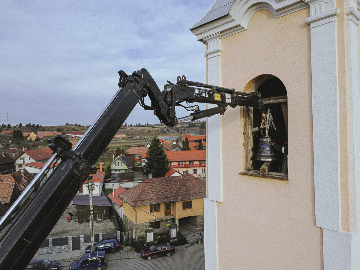 Látványos munkálatok keretében cserélték ki a kápolnásfalusi római katolikus templom tornyában a régi harangokat az újakkal.