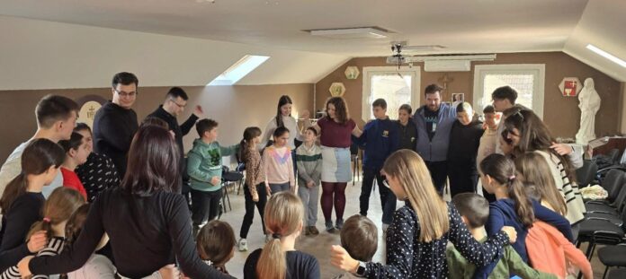 A szombat szívmelengető programmal folytatódott, ugyanis a délelőtt folyamán bekapcsolódtak a Kerekes Péter-Miklós segédlelkész által a Szent Imre-plébánián szervezett ministránsfoglalkozásba. A közös játékok, az örömteli pillanatok és a beszélgetések nagyon kellemes indításai voltak a napnak, vidámsággal és szeretettel töltötték meg a reggelt. Az ezen foglalkozáson való aktív részvétel közösségi szempontból és szakmai fejlődés szempontjából is értékes volt, hiszen olyan új tapasztalatokkal gazdagodtak, amelyeket a későbbiekben is hasznosíthatnak. Ezért a csapat részéről köszönet illeti a gelencei segédlelkészt, amiért lehetőséget adott egy ilyen programon való részvételre.