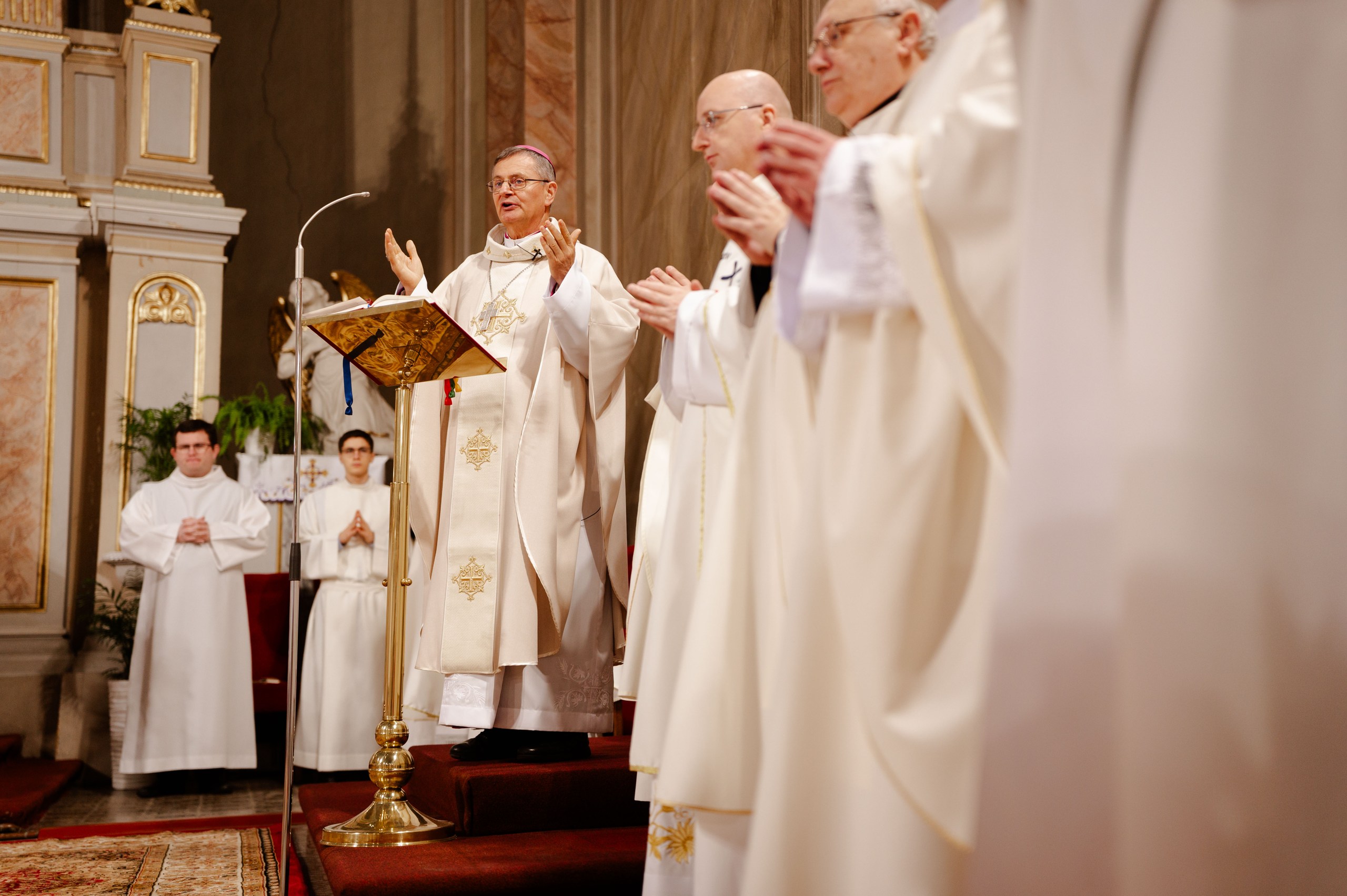 Schönberger Jenő püspök prédikációjában arra emlékeztetett, hogy a diakónus szolgálatának lényege nem pusztán feladatok elvégzése, hanem a Krisztussal való személyes, bensőséges kapcsolat. A szentelés titka abban áll, hogy a felszentelt személy Krisztus küldöttévé válik, aki nem a közösség megbízottja, hanem magának Jézusnak a képviselője. A püspök hangsúlyozta: a szolgálat alapja a Krisztus iránti szeretet, ugyanaz a szeretet, amelyet Jézus Pétertől is megkérdezett a Genezáreti-tó partján. Külön kiemelte, hogy a papok és diakónusok közötti testvéri szeretetnek is jellé kell válnia a hívek előtt.  A püspök arra kérte a jelöltet, hogy diakónusként legyen feddhetetlen és Szentlélekkel eltelt szolgáló, aki Krisztus szeretetéből merítve őrzi a hit tisztaságát, életével is tanúságot tesz az evangéliumról, és hűségesen kitart abban a küldetésben, amelyre meghívást kapott.