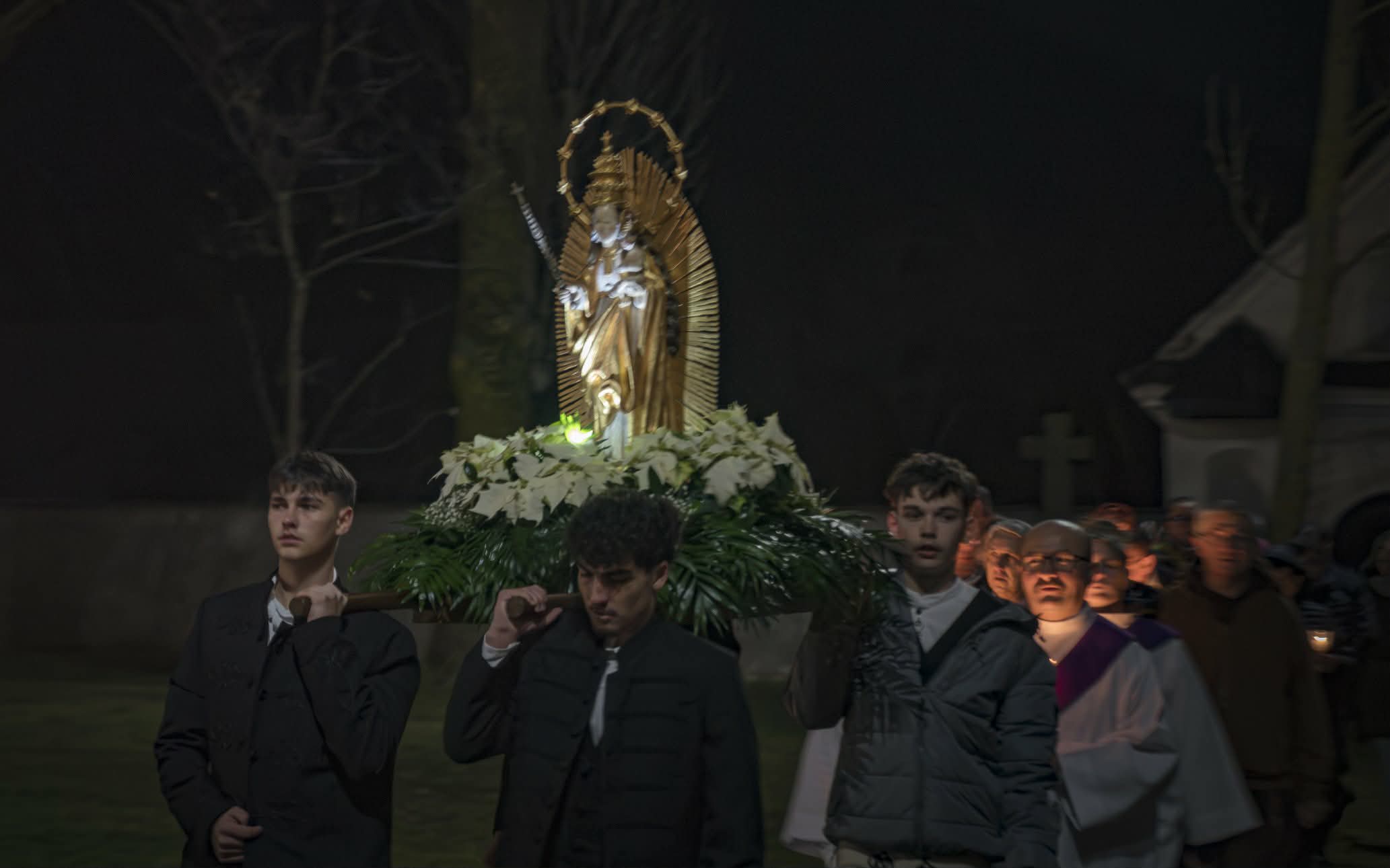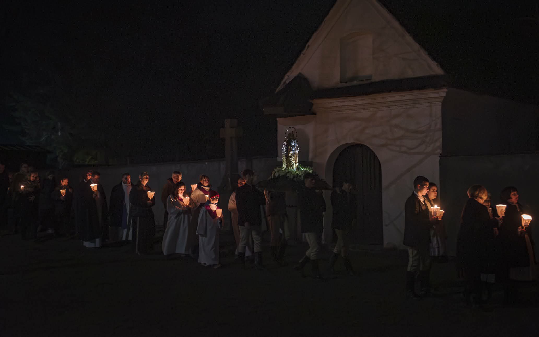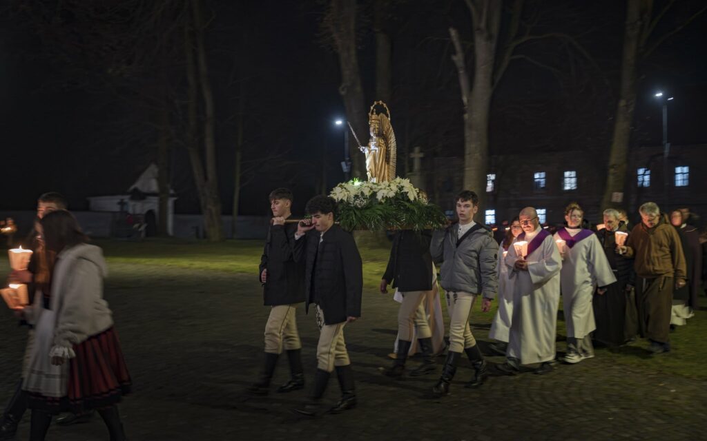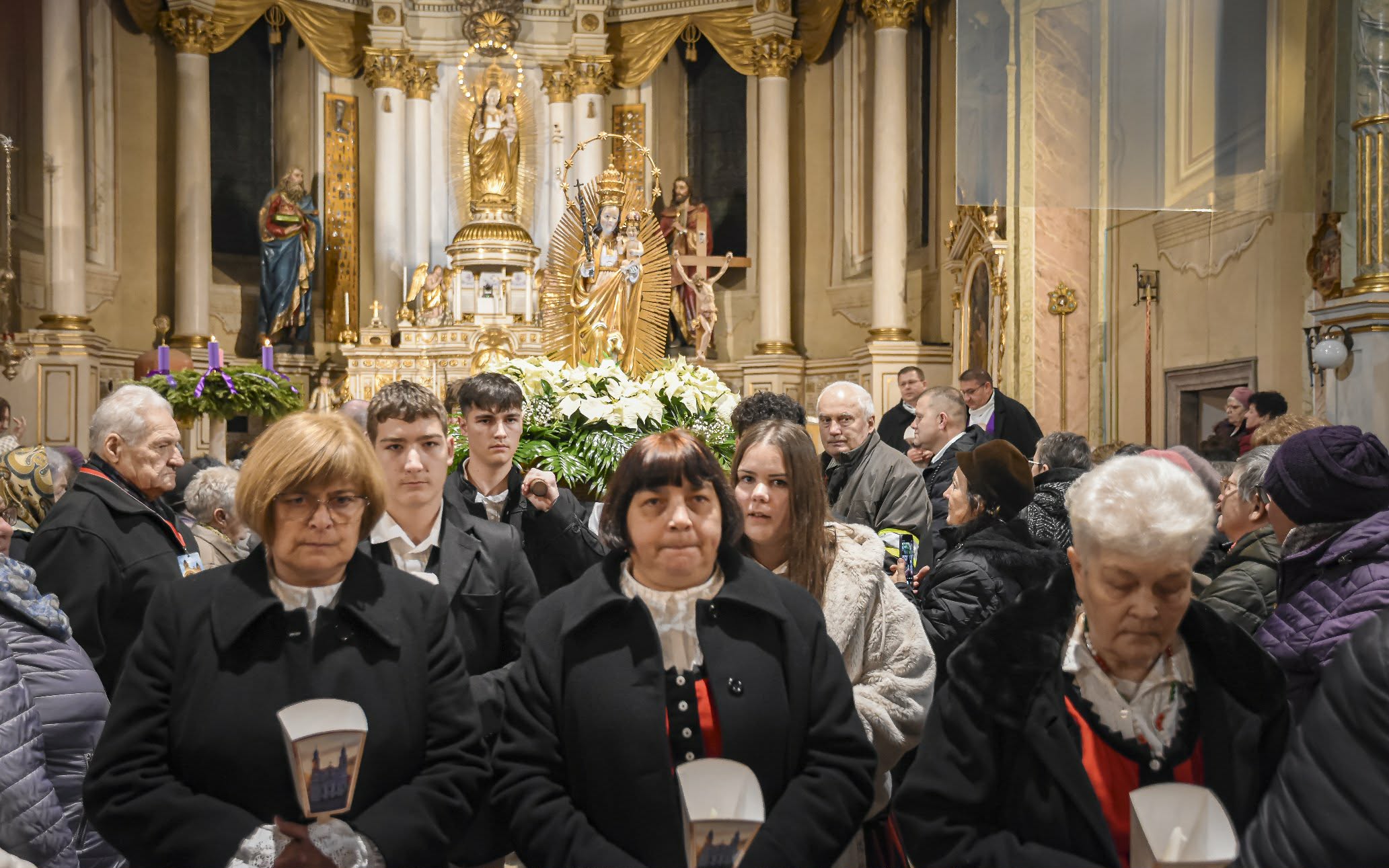 A gyertyás körmenetben ugyancsak a népviseletbe öltözött fiatalok vitték a Szűzanya kegyszobrának másolatát. Az elsőszombati Mária-köszöntőt a Mária Rádió és a kegyhely YouTube-csatornája élőben közvetítette. A következő Mária-köszöntő január 3-án lesz.