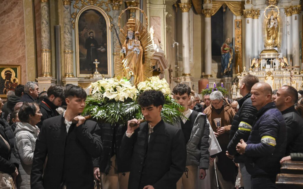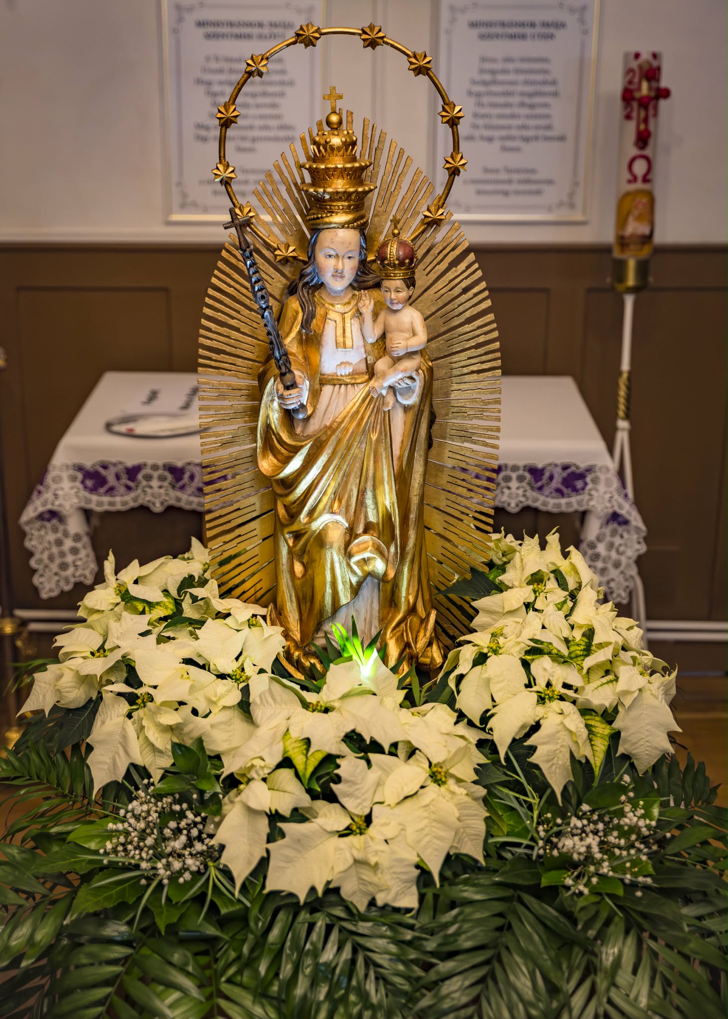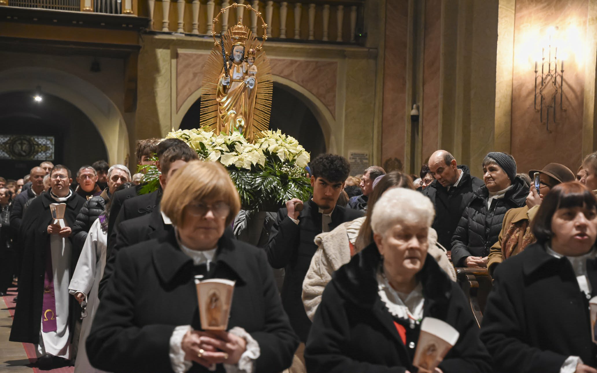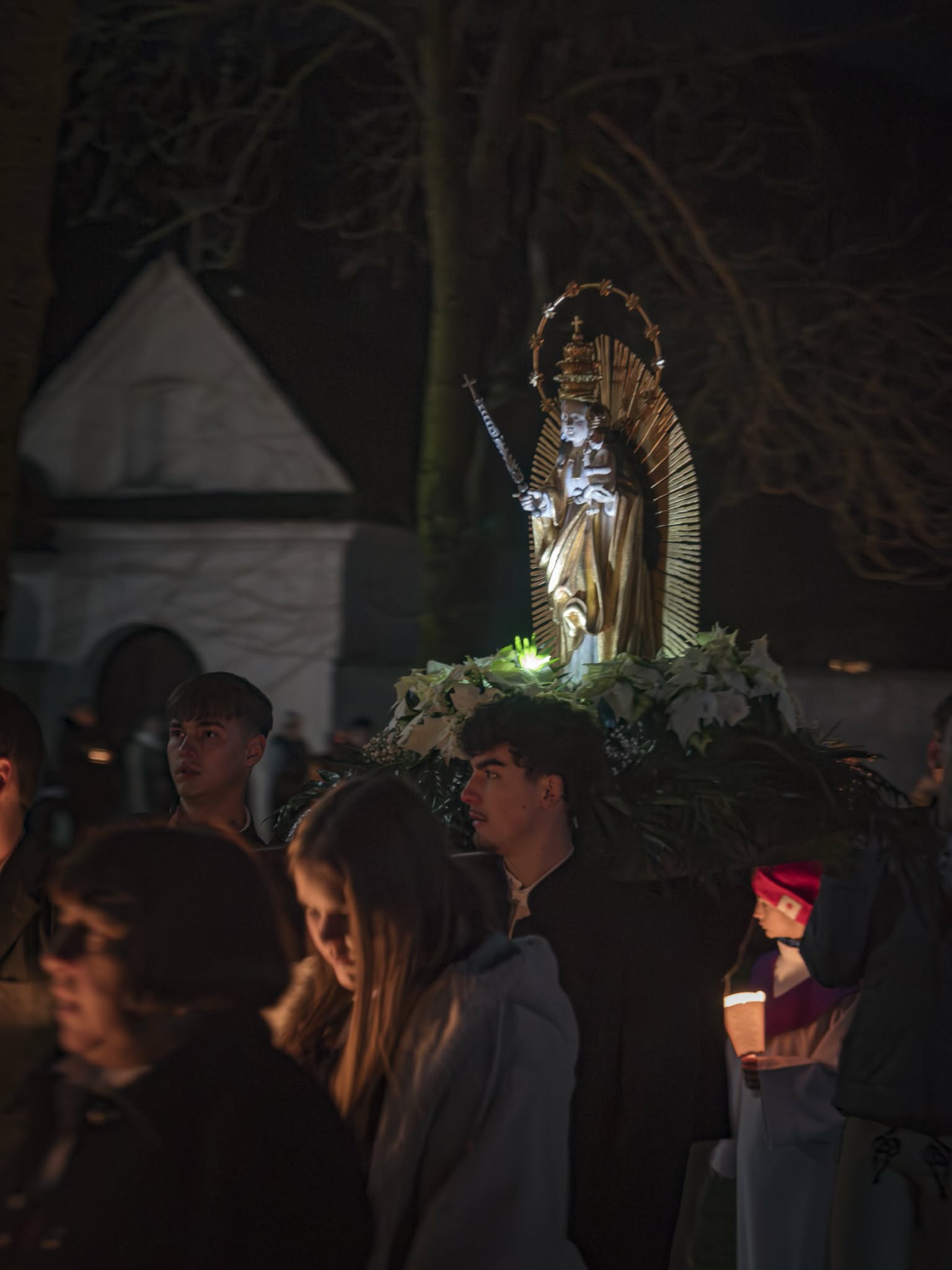 A gyertyás körmenetben ugyancsak a népviseletbe öltözött fiatalok vitték a Szűzanya kegyszobrának másolatát. Az elsőszombati Mária-köszöntőt a Mária Rádió és a kegyhely YouTube-csatornája élőben közvetítette. A következő Mária-köszöntő január 3-án lesz.