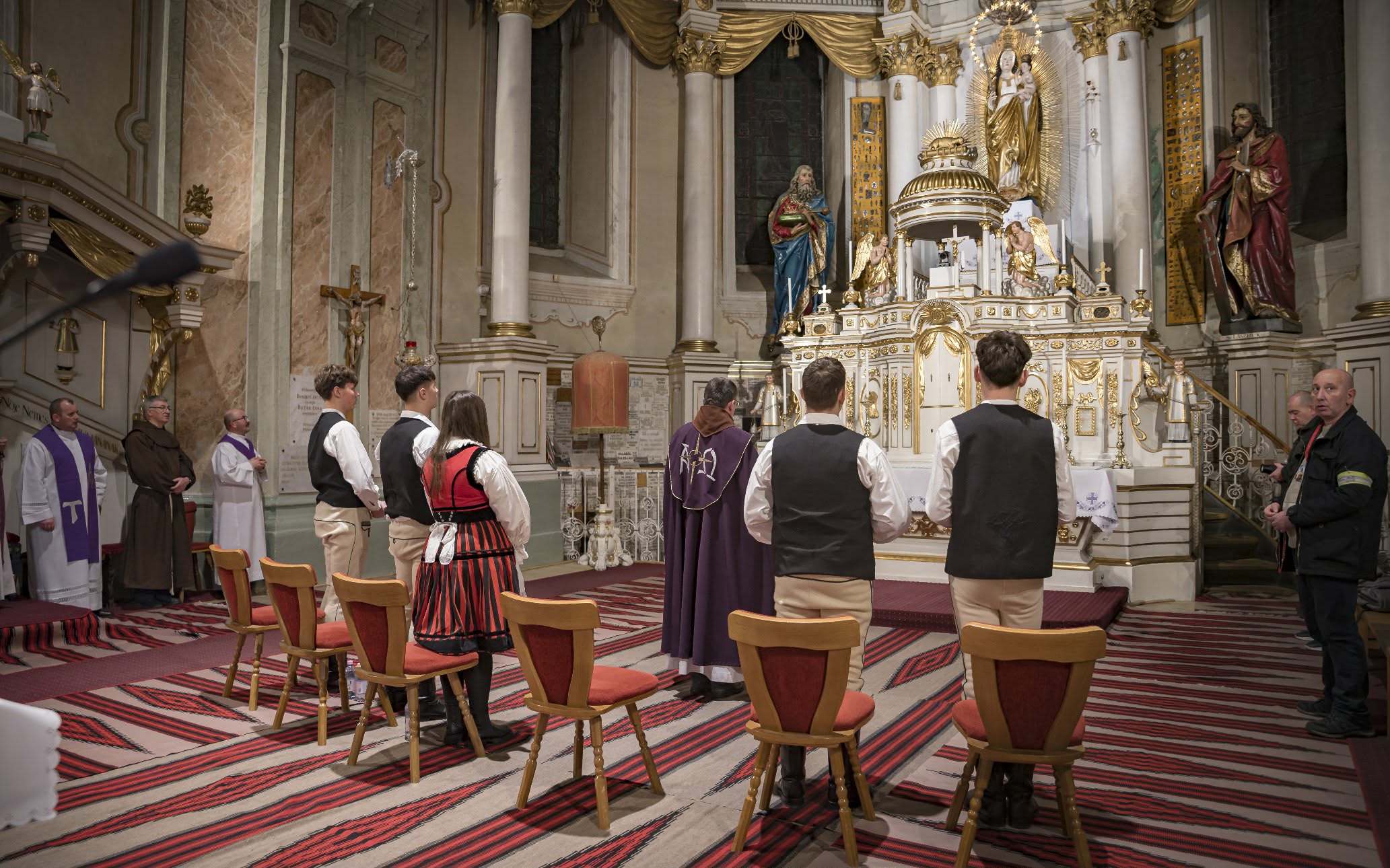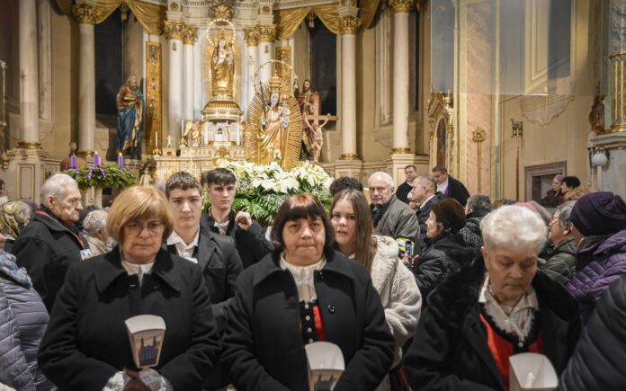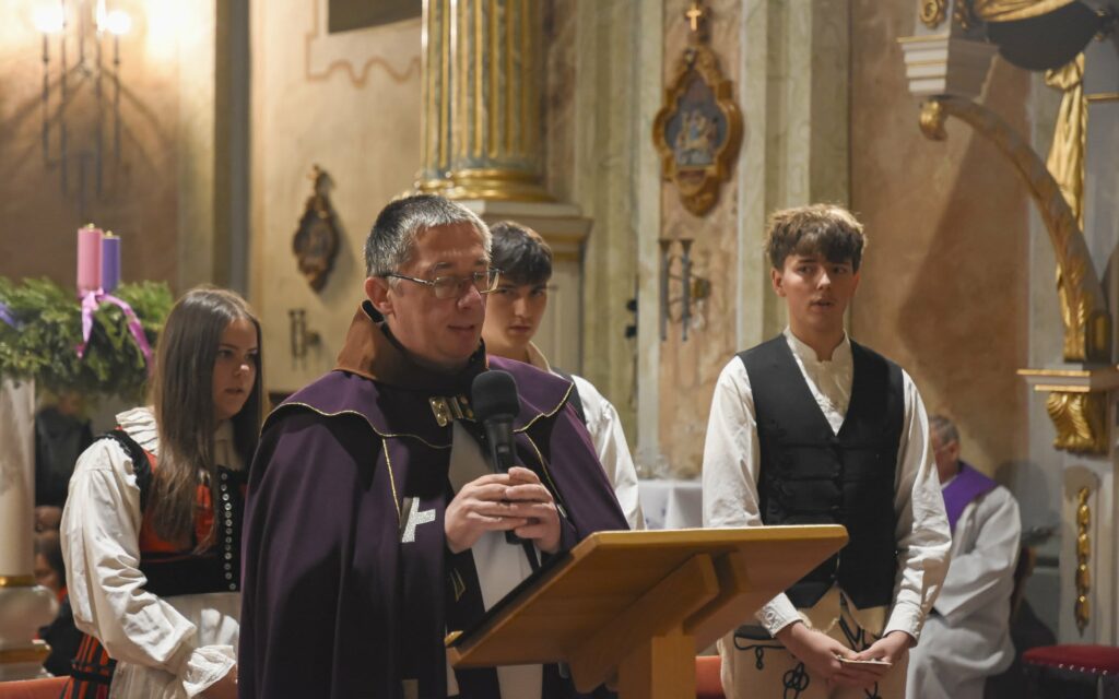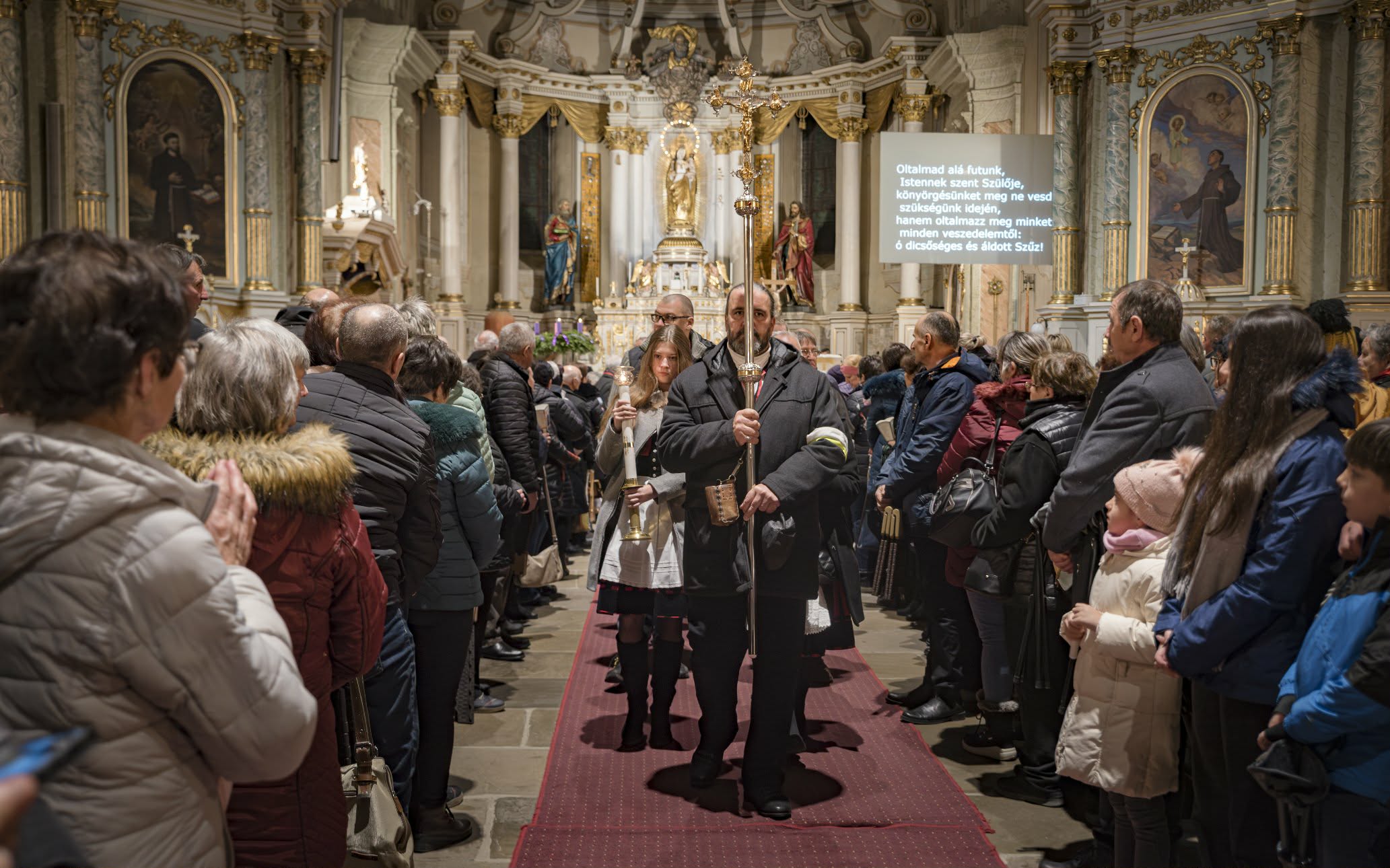 A hat órától kezdődő szentmisét Gegő Julianus ferences szerzetes mutatta be. Prédikációjában hangsúlyozta: az advent annak felismerése, hogy „Isten nemcsak közel jön – hanem mindig is közel volt.”