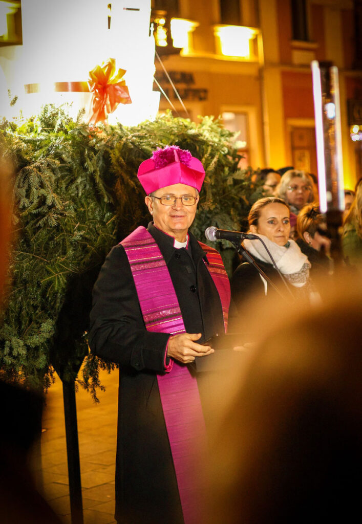 Dicsőítő imaestet tartottak a szatmári székesegyházban december 7-én, advent második vasárnapján. Az esemény a második adventi gyertya meggyújtásával kezdődött a Pannónia szálló előtti koszorúnál, ahol Schönberger Jenő megyés püspök ünnepi gondolatai hangzottak el.