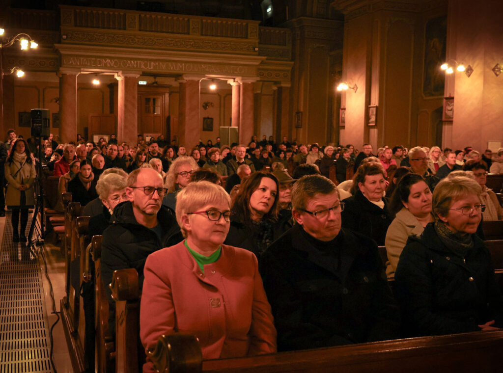 A szentmise után különleges adventi imaóra következett, amelyet a K-EGY (Krisztussal Együtt Megújulni), a Missziós Közösség zenekara vezetett. A Törjön út! címmel meghirdetett adventi turné harmadik állomásaként Szatmárnémeti adott otthont a dicsőítő alkalomnak, amelynek célja az volt, hogy mindenki – kereső és hívő egyaránt – megtalálhassa a lelki elcsendesedés és az Istennel való találkozás helyét. A gyertyafénnyel megvilágított templom, az imára hangoló gondolatok, a közös hálaadás és a dicsőítő énekek segítették a jelenlévőket abban, hogy mélyebben megéljék az adventi várakozás örömét. Az imaest adventi üzenetét vihették magukkal útravalóként a résztvevők: engedjétek Istent belépni az életetekbe, hogy az ő fénye átragyoghasson rajtatok!