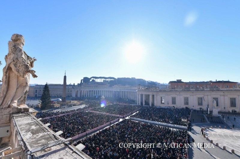 A szentatya szerdán délelőtt a Szent Péter téren tartott általános kihallgatáson folytatta a Krisztus feltámadása és a kortárs világ kihívásai témájú jubileumi katekézissorozatát. Napfényes hideg időben mintegy 15 ezer zarándok hallgatta Leó pápa tanítását, aki a katekézis után az eléje lépő püspökök közt szeretettel üdvözölte Hortobágyi Cirill pannonhalmi bencés főapátot.