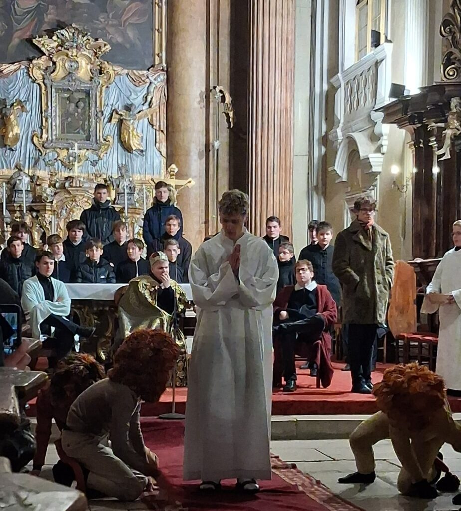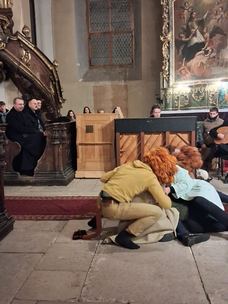 A kolozsvári piarista templomban a budapesti piarista gimnázium kórusa adta elő a liturgikus játékot a kecskeméti piarista gimnázium leánykórusa közreműködésével. A diákok éneke tisztán csengett, nemcsak a kórusszámok, de az egyes szereplők énekhangja is, az előadás egésze hangulatos volt, a történetet mozgással, gesztusokkal valóban megjelenítették, az oroszlánok megjelenése általános derültséget keltett, tanúi lehettünk a vadállatoknak a próféta hatására való megszelídülésének.