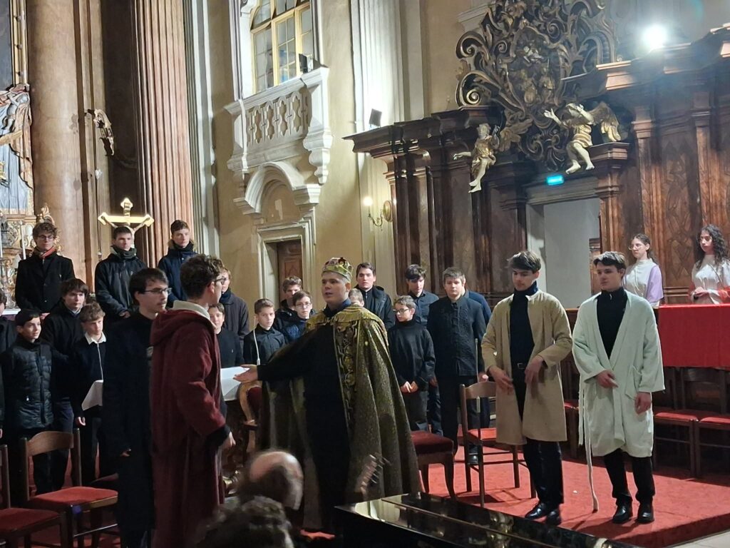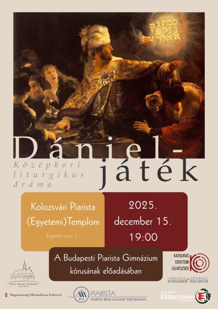 A Dániel-játék 13. századi zenés dráma, a szöveget egyszólamú zene kíséri; a szöveget az észak-franciaországi Beauvau katedrálisának diákjai írták 1227 és 1234 között. Gregorián dallamok, korabeli világi énekek és a drámai jelenetek váltakoznak, a szöveg követi Dániel bibliai történetét, a próféta alakján keresztül az isteni igazságra, az emberi döntések súlyára és a remény valóságára irányítja a figyelmet. Két piarista gimnázium, a budapesti és a a kecskeméti diákjai remek előadása szép lehetőség volt a karácsonyra való lelki készülődésre.