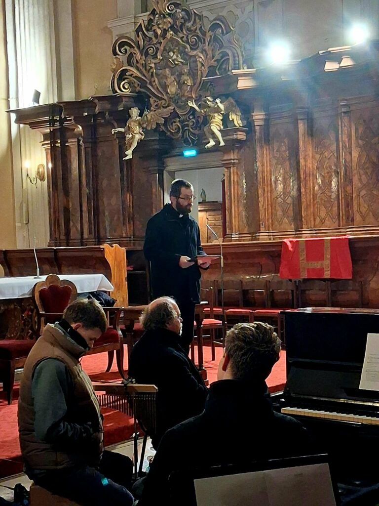 Molnár Lehel piarista szerzetes, egyetemi lelkész bevezetőjében a helyszínről, a piarista templomról elmondta: „a kolozsvári jezsuiták 300 évvel ezelőtt építették ezt a templomot. Májusban ünnepeltük felszentelésének háromszázadik évfordulóját. Jövőre lesz 250 éve, hogy a piaristák átvették a jezsuitáktól a templomot, és folytatták az ifjúság nevelését hitre és tudásra. Ez a zenei esemény lehet a 300 éve felszentelt akadémiai templom ünnepségeinek záróakkordja, és a 250 éve Kolozsvárra érkezett piaristák jubileumi évének nyitánya.”