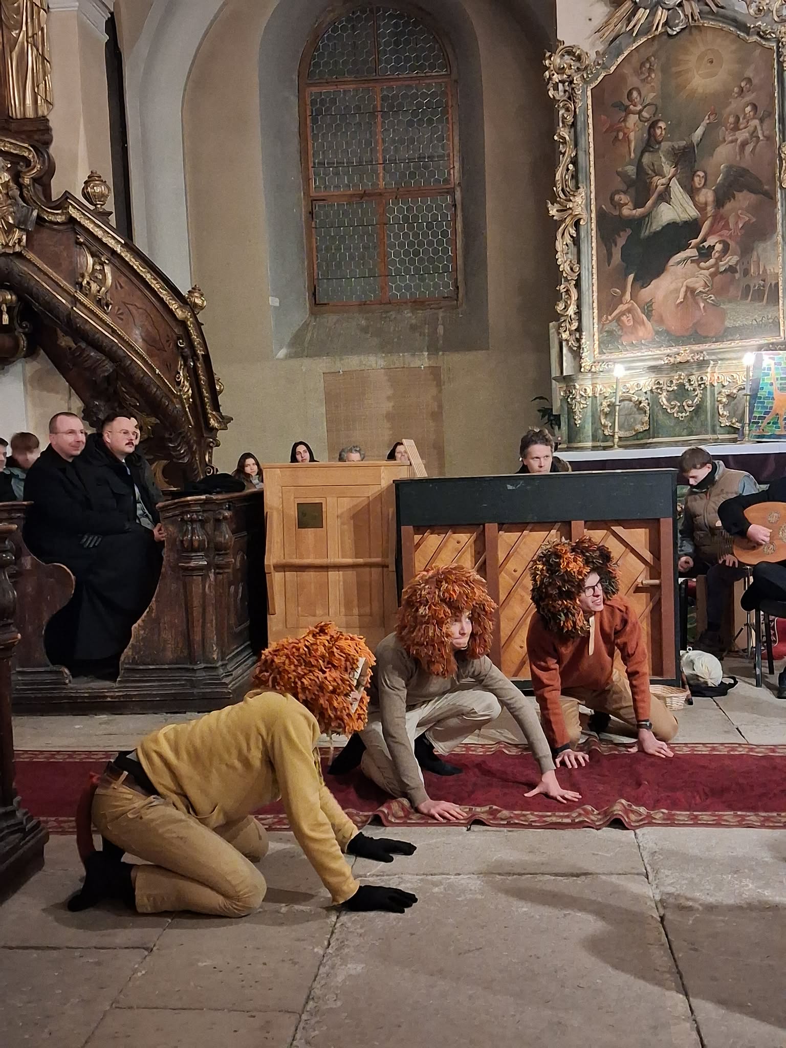 A kolozsvári piarista templomban a budapesti piarista gimnázium kórusa adta elő a liturgikus játékot a kecskeméti piarista gimnázium leánykórusa közreműködésével. A diákok éneke tisztán csengett, nemcsak a kórusszámok, de az egyes szereplők énekhangja is, az előadás egésze hangulatos volt, a történetet mozgással, gesztusokkal valóban megjelenítették, az oroszlánok megjelenése általános derültséget keltett, tanúi lehettünk a vadállatoknak a próféta hatására való megszelídülésének.