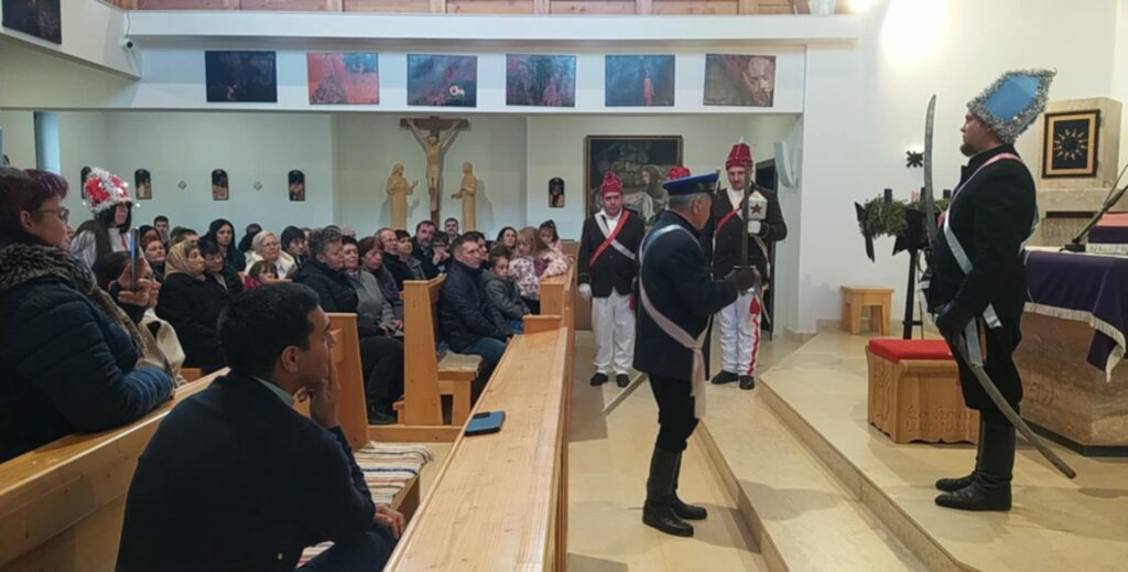 „Több héten át figyeltük, ahogyan a fény lassan növekszik, ahogyan a várakozás egyre sürgetőbbé, egyre személyesebbé válik. Advent negyedik vasárnapján már a teljesség, a karácsony közepén állunk, már nem csak várunk, hanem szinte halljuk a lépteket: az Úr közel van! Az adventi koszorú növekvő fénye különösen szépen összefoglalja mindazt, amiről az adventi időszak szól, hiszen a fény nem magától terjed. A fényt nem lehet erőszakkal vinni, a fényt csak az hordozhatja, az adhatja tovább, aki vigyáz rá, aki tudja, hogy a sötétség nem végleges és annak a hatalmát megtartja Krisztus világossága.” Mondta Papp Márton csíkszentkirályi plébános prédikációjában arra is figyelmeztetve a jelenlévőket, hogy „Isten nem távolról szemléli az emberek küzdelmeit, nem kívülről avatkozik be az életünkbe, hanem belép az emberi történelembe, belép a tevékenységünkbe, belép a bizonytalanságba. Isten velünk akar lenni ott, ahol félünk, rettegünk, ahol kérdéseink vannak, vagy ahol elfáradunk. Úgy, ahogyan a fény dereng a sötétben és nem eltünteti a sötétet, hanem megtöri annak hatalmát. Isten jelenlétét ébreszti számunkra üzenetével az adventi koszorúnk fénye, ahogy egyre nő, ahogy egyre teljesebbé válik. Isten fénye nem egy elvont eszme lesz, nem egy távoli tanítás, hanem konkrétan megérkezik otthonainkba, a kérdéseinkbe, a fáradtságainkba… Nagy kérdés számunkra, különösen a mai rohanó világunkban, hogy tudunk-e krisztusi fényt kovácsolni az otthonaink csendjéből, a munka utáni fáradtságból, a hűségből, az egymásért vállalt áldozatból? Értjük-e mi, akik nem a szavakból élünk, hanem a kétkezi munka mindennapi fáradtságából tartjuk el a családjainkat, hogy időt, figyelmet és hitet kell tovább adnunk gyermekeinknek? A fényt nem birtokolni, hanem hordozni, nem elrejteni, hanem tudni kell megosztani, továbbadni azoknak, akik még a sötétségben várják.