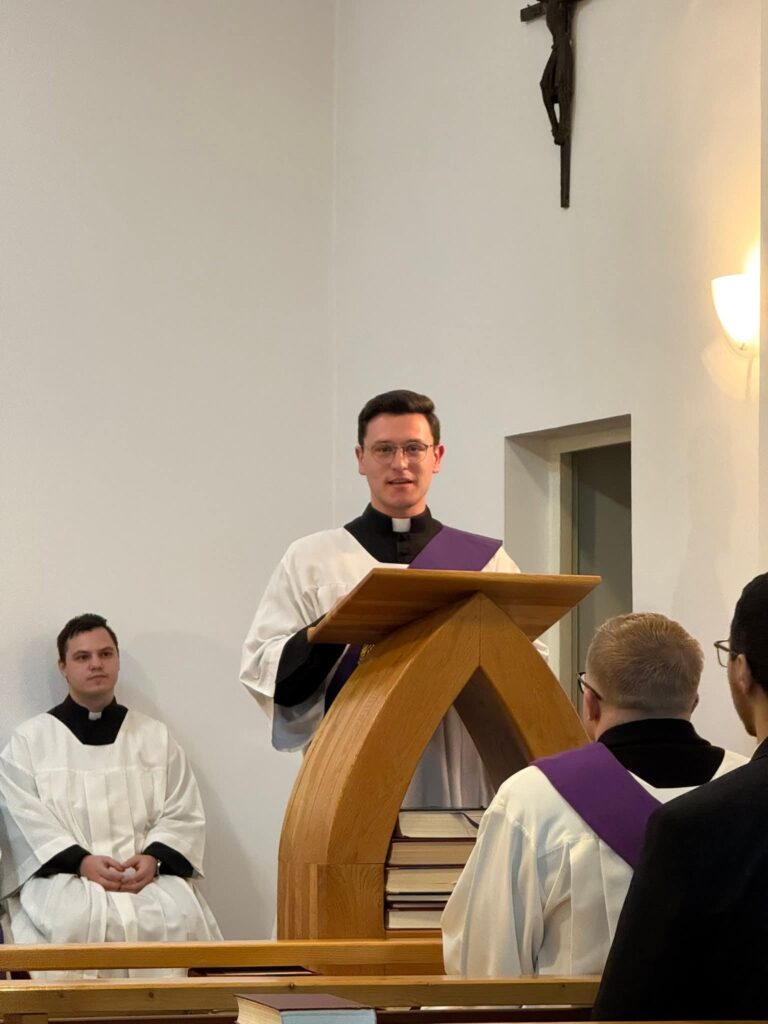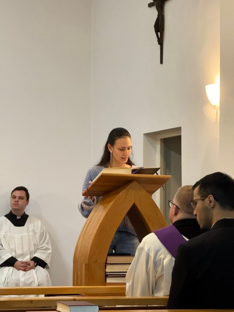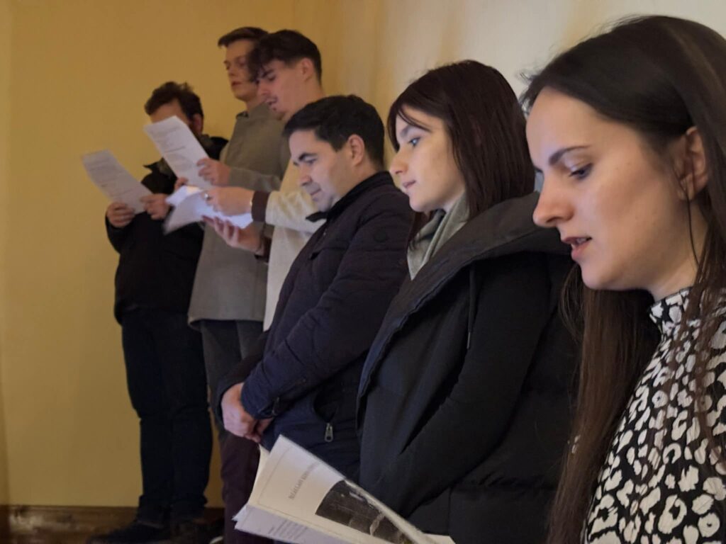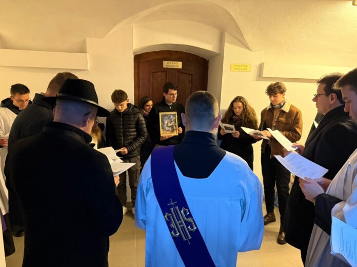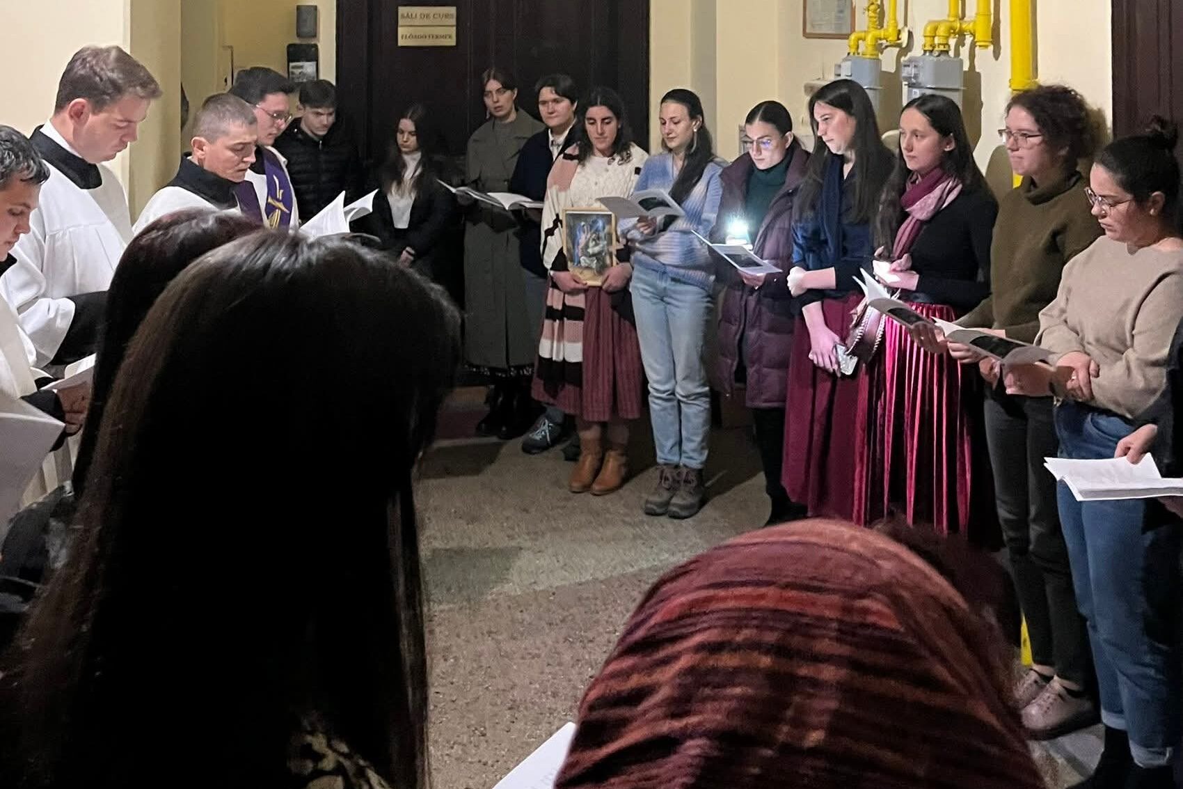 A gyulafehérvári papi szemináriumban tanuló és papi hivatásukra készülő kispapok a Kolozsváron teológiát tanuló világi társaikkal, valamint a két intézet tanáraival együtt fogadták a szállást kereső szent családot.