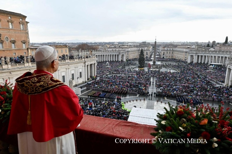 Karácsony napján a délelőtti szentmisét követően Leó pápa a Szent Péter-bazilika homlokzatának központi loggiájáról mondta el karácsonyi urbi et orbi üzenetét.