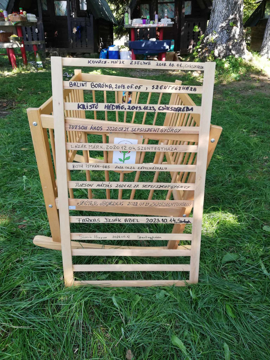 A bölcső egy másik ajándékot is adott: közösséget. Azok a családok, amelyeknek a gyereke ebben a bölcsőben ringott, Szentegyházán találkoztak egymással. Tíz gyerek állt egymás mellett – kicsiktől nagyokig –, mindannyian ugyanabban a bölcsőben ringtak. A bölcső lécei őrzik a benne ringatott gyerekek neveit, így a bölcső több család történetét hordozza magán, akiket össze is köt egymással. A magyarországi házaspárnak fényképet is küldtek. „Jó tudniuk, hogy nem hiába adták” – mondja Bogi.