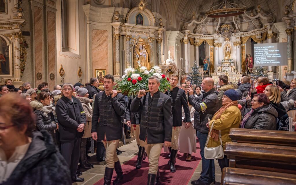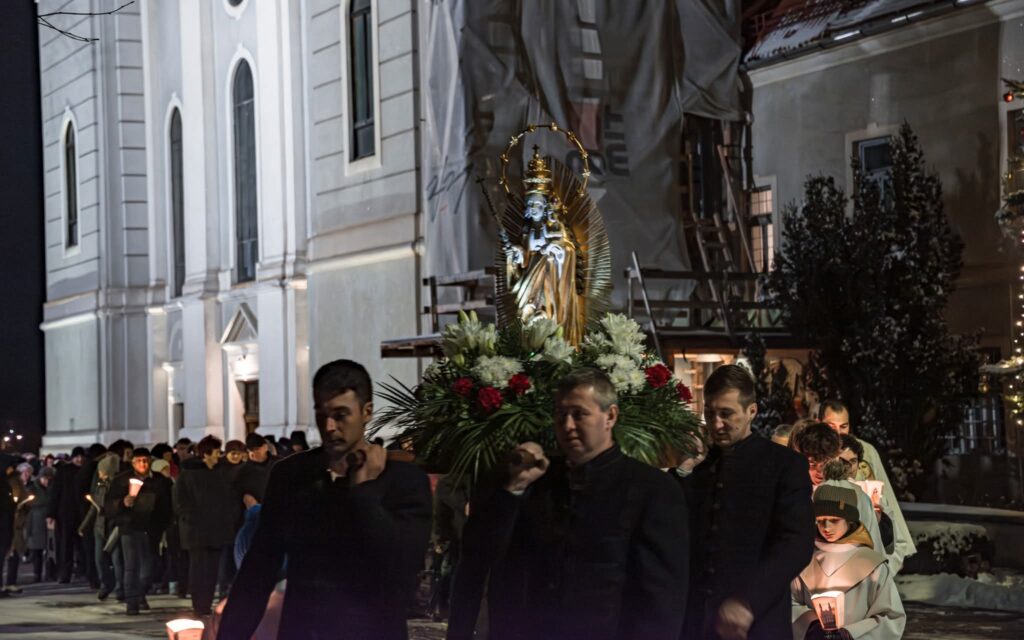 „Szűz Mária istenanyasága minden megszólításánál többet mond el róla, hiszen Isten senki másra nem bízott ekkora küldetést” – hangsúlyozta az elsőszombati Mária-köszöntőn Timár Sándor Asztrik ferences szerzetes, a csíksomlyói kegytemplom igazgatója. Az év első Szűzanya-köszöntőjén ezúttal is zarándokok sokasága vett részt.