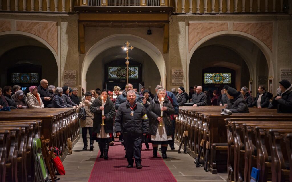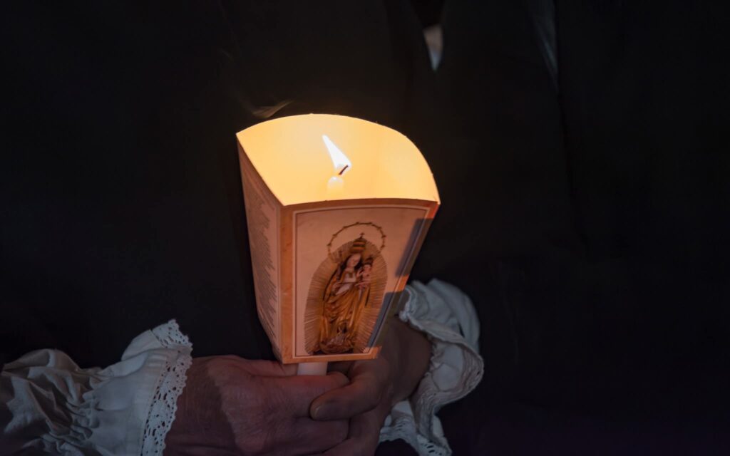 A szentmise után ugyancsak a csíkrákosi Sárosi Bálint Dalkör tagjainak vezetésével a világosság olvasóját imádkozták a zarándokok. A gyertyás körmenetben népviseletbe öltözött csíkrákosi férfiak vitték a Szűzanya kegyszobrának másolatát. A csíkrákosiakat elkísérte az egyházközség plébánosa, Márton István is.