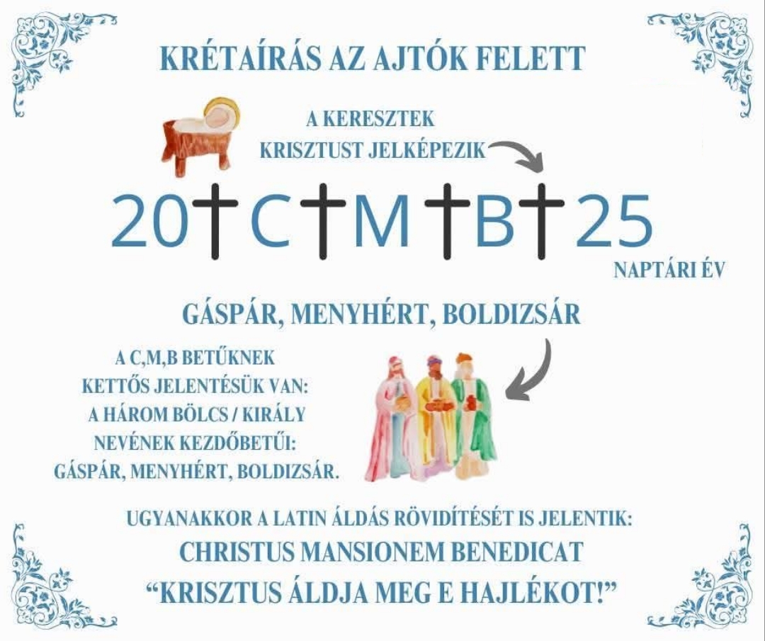 „Christus Mansionem Benedicat!” Krisztus áldja meg e hajlékot! Január 6-án, vízkeresztkor az egyház vizet szentel, és ekkor szentelik meg a házakat, családi otthonokat (benedictio domorum) a régi szép szokás szerint. A házszentelés Isten keresése, a vele való találkozás. Eredete a napkeleti bölcsekhez kötődik: Gáspár, Menyhárt, Boldizsár megjelent Jézus jászolánál, és kifejezte hódolatát, imádát a világ újszülött királya előtt. A házszentelés azon ,,könyörgő” áldások közé tartozik, amivel valami jót idézhetünk elő: akit vagy amit megáldunk, áldás forrásává válik. A ház-, illetve a lakásszentelést, annak megújítását, normál körülmények között pap végzi, az ajtó szemöldökfájára (szentelt) krétával fölírja az évszámot, ani a népi értelmezés szerint a háromkirályok nevének (Gáspár, Menyhért, Boldizsár) kezdőbetűit tartalmazza, valójában a három betű a lat. áldásformula kezdőbetűi: Christus Mansionem Benedicat (Krisztus áldja meg e házat). A népi hagyomány a házszentelésnek gonoszűző jelleget tulajdonít. Régebben egyúttal a hívők lajstromba szedésének napja, alkalma, a pap és kántor javára fizető nap is volt. Egyes helyeken a templomban aznap szentelt vízzel maguk a háziak szentelik meg házukat: szobájukat és az istállókat, ólakat is. Képriport a gyulafehérvári főegyházmegyéből a plébániáknak a közösségi médiában közzétett híradása alapján.