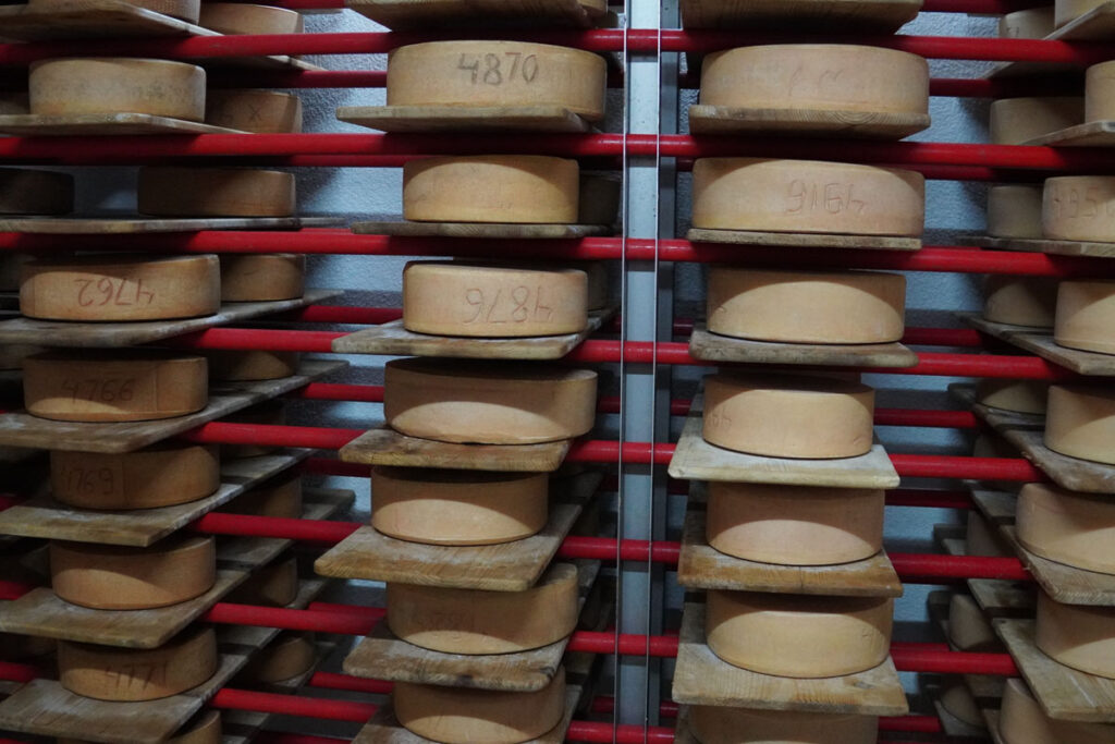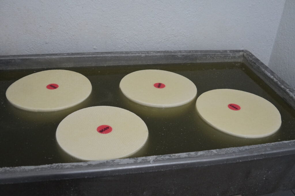 A ma készült sajt holnap reggelig fog préselődni, holnap reggel kilazítom a formákat, majd 24 százalékos sótartalmú fürdőbe teszem. Ehhez parajdi sót használunk. A sófürdő során átáramlik a sajtunkon a sós víz, kitaszítja a maradék savót is a sajtunkból, és a kéregképződésben is segít. És persze ízt ad a termékünknek. A sófürdőből aztán az érlelőbe kerül a sajt. Az érlelőben nagy polcrendszer van, ezeken a sajtdeszkákon a megfelelő ideig érleljük a nyolc-tíz kilós sajtgurigákat. Közben naponta levesszük őket, és egy puha kefével átkeféljük a felületüket, hogy a kis pórusokon annyi nedvességet tudjanak beszívni magukba, amennyire szükségük van. A sajtunkat a laktózérzékenyek is nyugodtan fogyaszthatják, mert a tejcukor lebomlik és tejsavvá alakul. De ahhoz, hogy ez végbe tudjon menni, időt kell hagyni neki. A négy hónapos sajtunkban már nem kap tejcukrot a laboratórium. A négy hónapos sajt is finom, de a hat hónapos még finomabb – minél érettebb, annál gazdagabb ízekben, aromákban, és természetesen annál értékesebb. És ez akár öt évig is eláll, ha megvannak a megfelelő kondíciók. Ehhez társul a pincének a klímája is, mert ahhoz, hogy ezek a sajtok érlelődni tudjanak, megfelelő hőmérséklet és páratartalom kell. A hőmérséklet 10 és 15 Celsius fok közötti, a páratartalom pedig 75–95 százalékos a pincénkben.