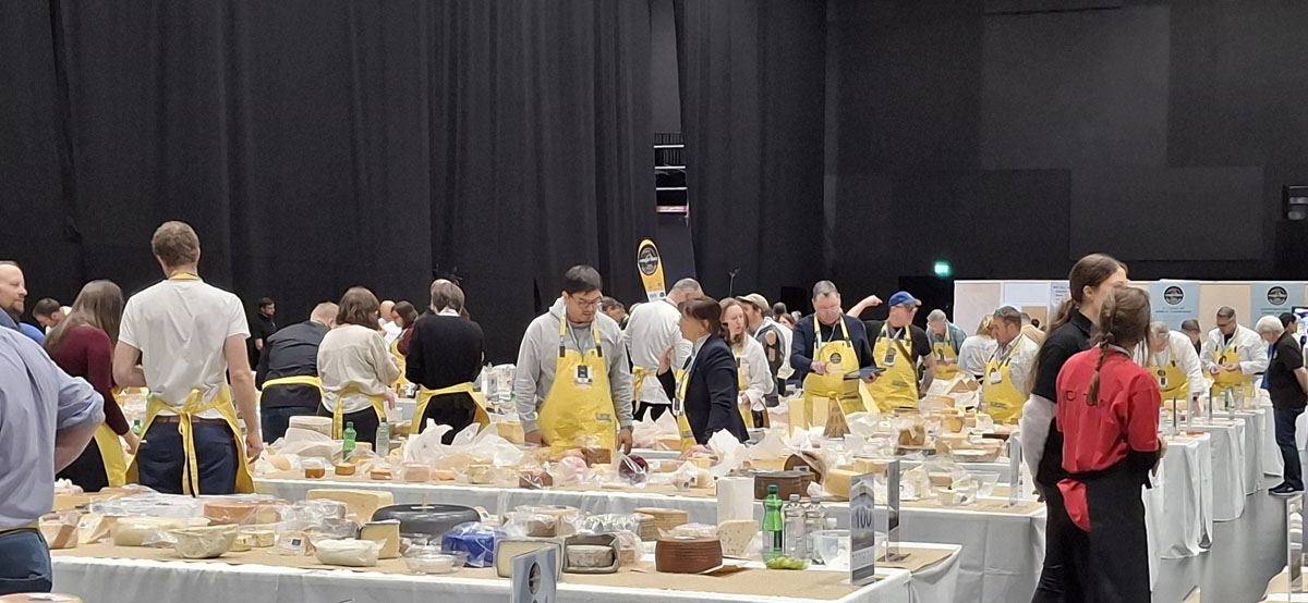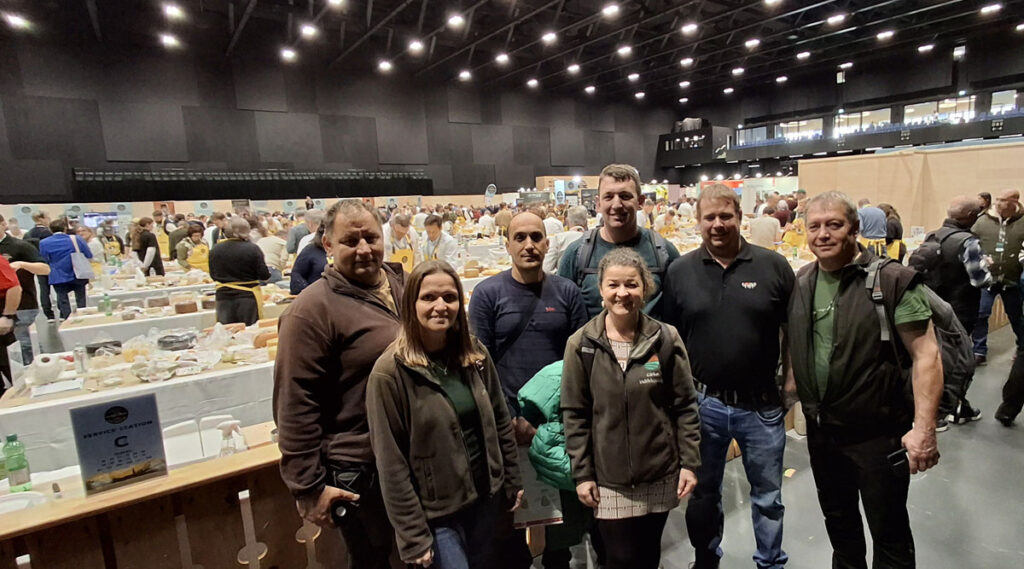 Igen, több versenyen vettünk részt. Itt, helyi szinten is több aranyat és ezüstöt gyűjtöttünk be, utána megmérettettük Magyarországon is, onnan is hoztunk el aranyakat, ezüstöket, és tavalyelőtt a kollégáim javaslatára kiküldtük a világbajnokságra a sajtjainkat. A sikert mi sem reméltük, mi csak azt akartuk, hogy legyen egy nem részrehajló elbírálás, és meglepetésünkre egy aranyat hozott a sajtunk. Ettől fellelkesedve 2025-ben egy hathónapos és egy tizenkét hónapos érlelésű sajttal neveztünk be, két egészen más sajttal, mint egy évvel korábban, a Pricske sajttal, és mindkettő egy-egy ezüstöt hozott. Ez a világbajnokság 1800 kilométerre tőlünk, Svájcban volt, a sajtok hazájában. Száztíz asztalra került a több mint 5200 benevezett sajt, amit 260 bíró bírált el. Ők végigkóstolták a sajtokat, eleve kiselejtezték azokat, amelyeket nem tartottak bírálatra alkalmasnak. Aztán kategóriánként még egyszer megkóstolták őket, majd más bírák is megkóstolták, és pontozás alapján döntötték el, hogy kategóriánként melyik sajtot érdemes díjazni. Reggel nyolctól délután hat óráig zajlott a kóstolás egy, az átlagosnál kétszer nagyobb sportcsarnokban. A 110 hosszú asztal bal oldalán ment három zsűritag, a jobb oldalán még három. Az asztalokon két sorban voltak felrakva a sajtok, és minden egyes sajtot legalább három bíró kóstolgatott. Minden sajt után használtak egy semlegesítőt, egy almát, körtét vagy diót, ami elnyomja az ízeket.